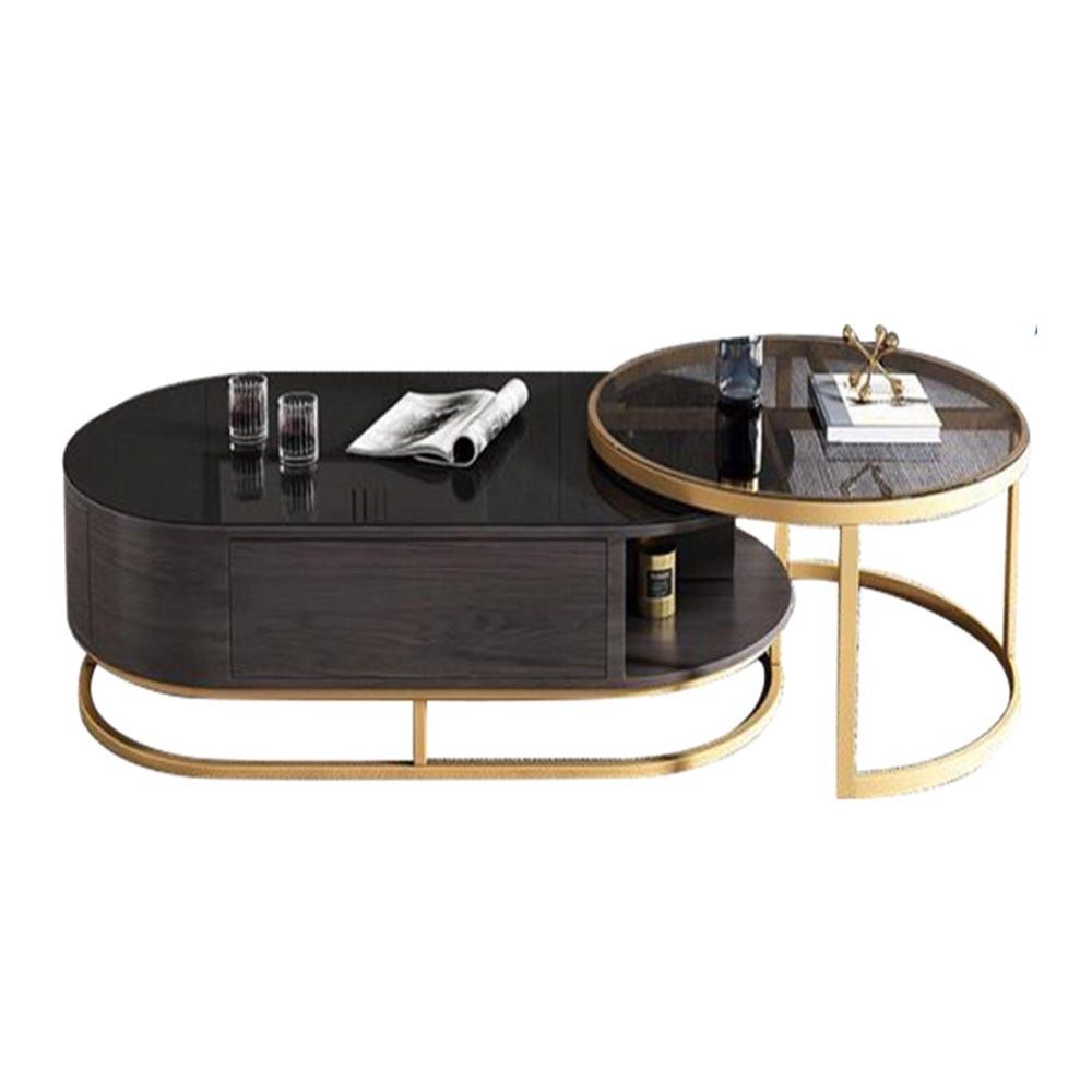 طاولة قهوة لاريدو - طقم من قطعتين - زجاج أسود/أبيض/ذهبي