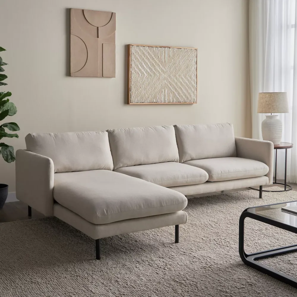 Left Corner Jasper L Shaped Sofas - Off White, 210 cm W x 150 cm D x 85 cm H