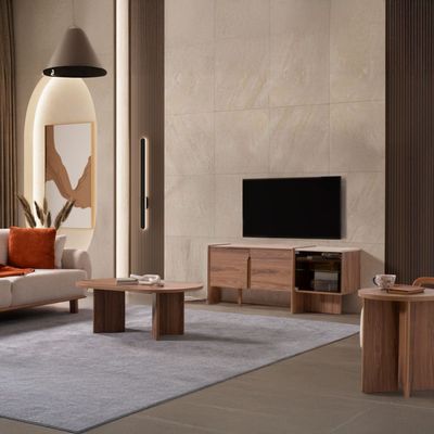 Letto 2 Door Buffet Cabinet With Open Shelves - Beige/Walnut