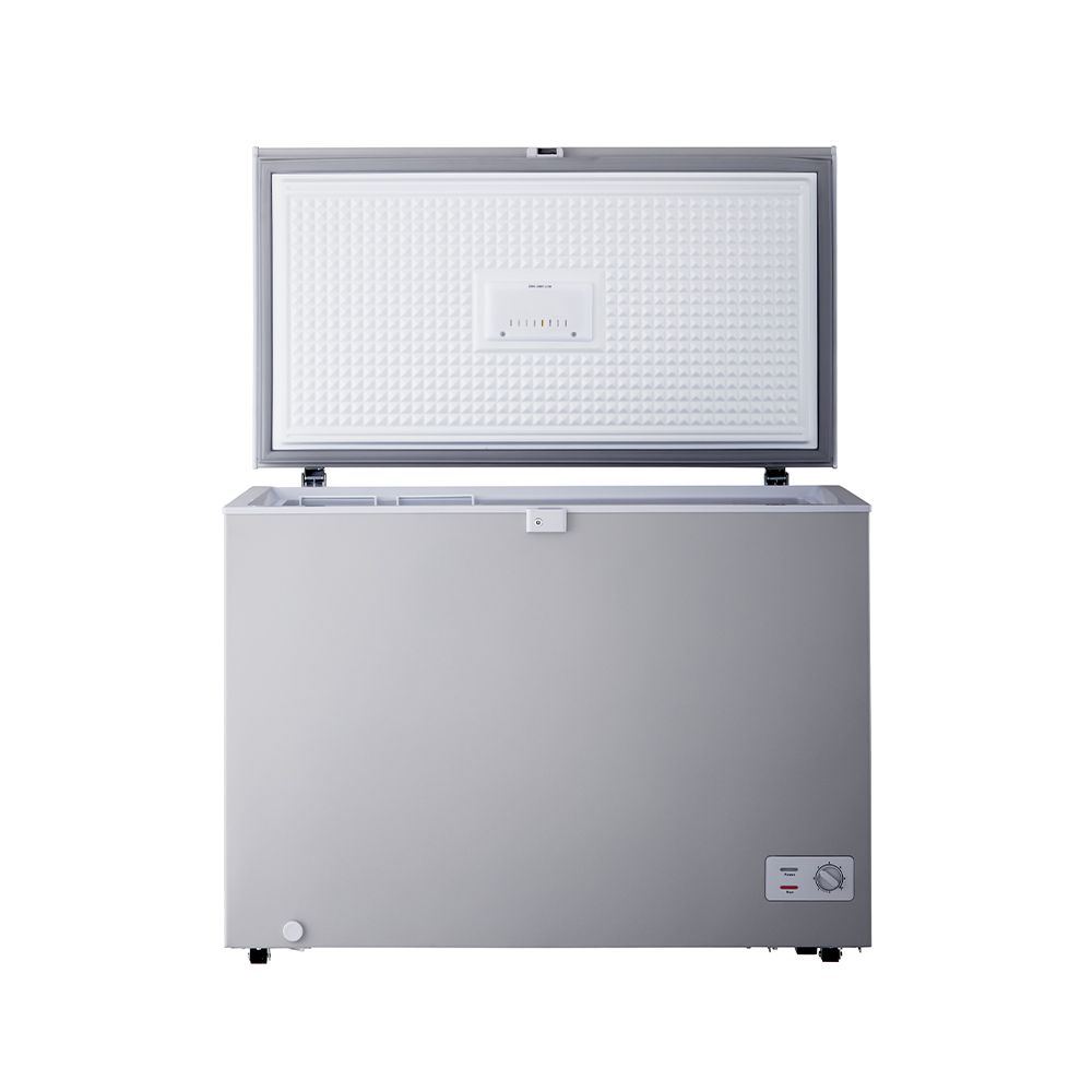 The LG GCS-415GQFG is a 415-liter chest freezer in a sleek silver finish, ideal for large households or commercial use