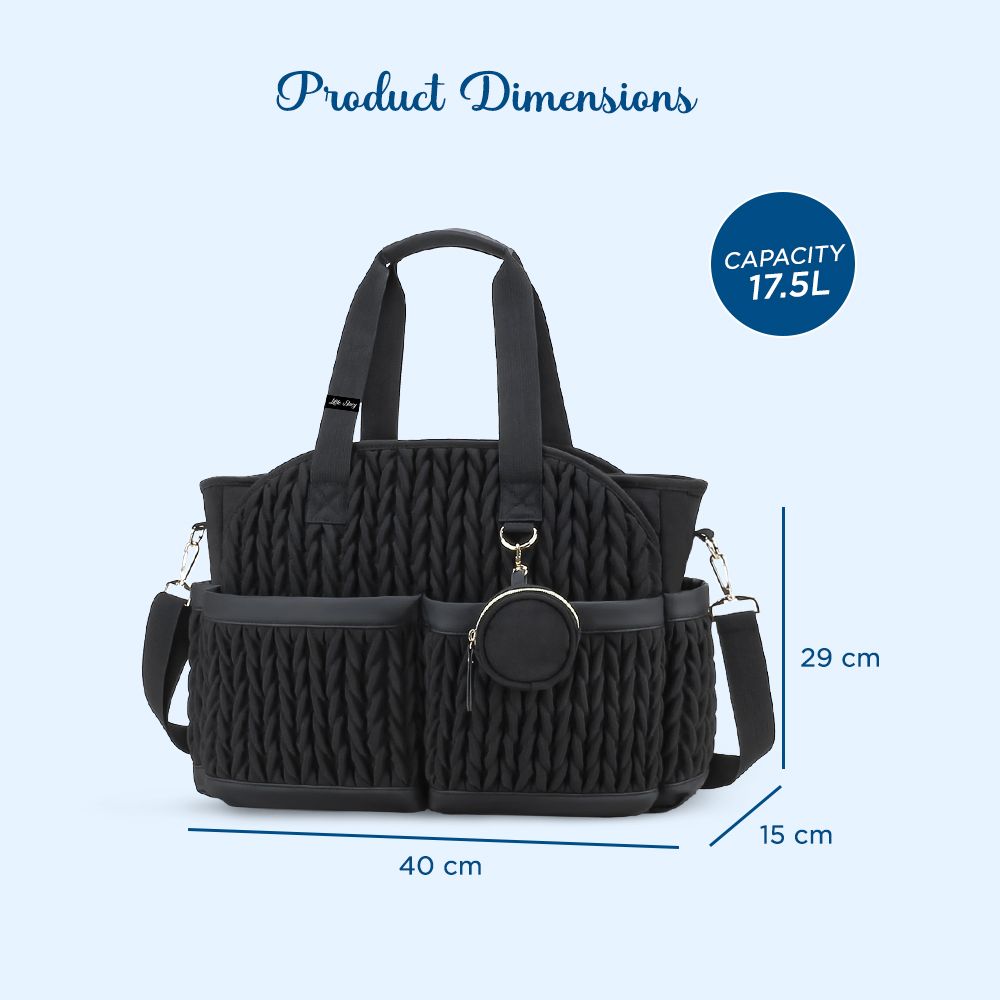 Meet the Little Story Nova Tote with Pacifier Pod – where style meets smart parenting. Crafted from water-repellent premium polyester with chic knit stitching, this bag isn’t just functional, it’s a fashion statement. With a roomy 17.5L capacity and weighing under 1kg, it’s designed to carry everything your little one needs without weighing you down.