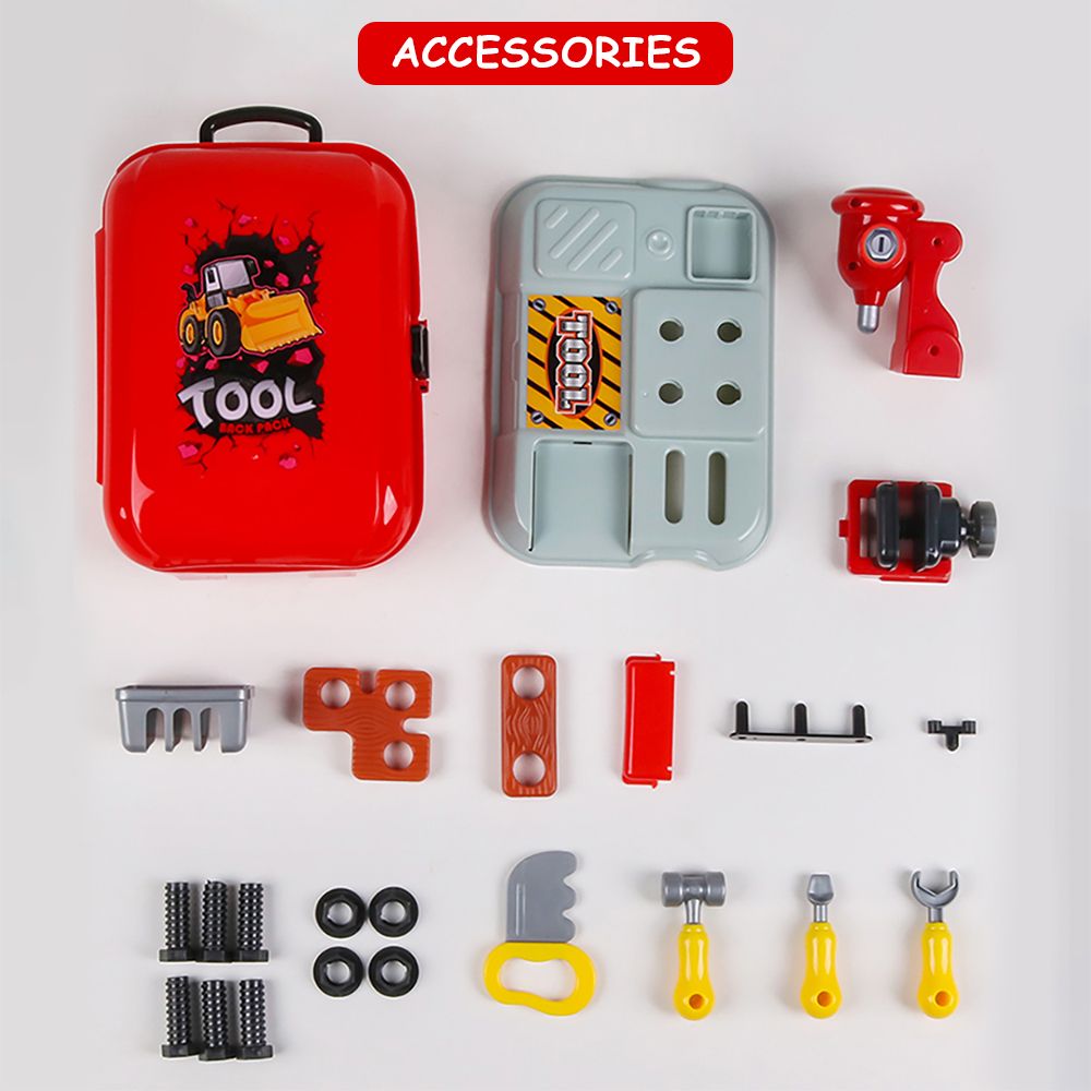 Little Story Role Play Mechanic / Builder Toolbox Backpack (25 Pcs) - Red
