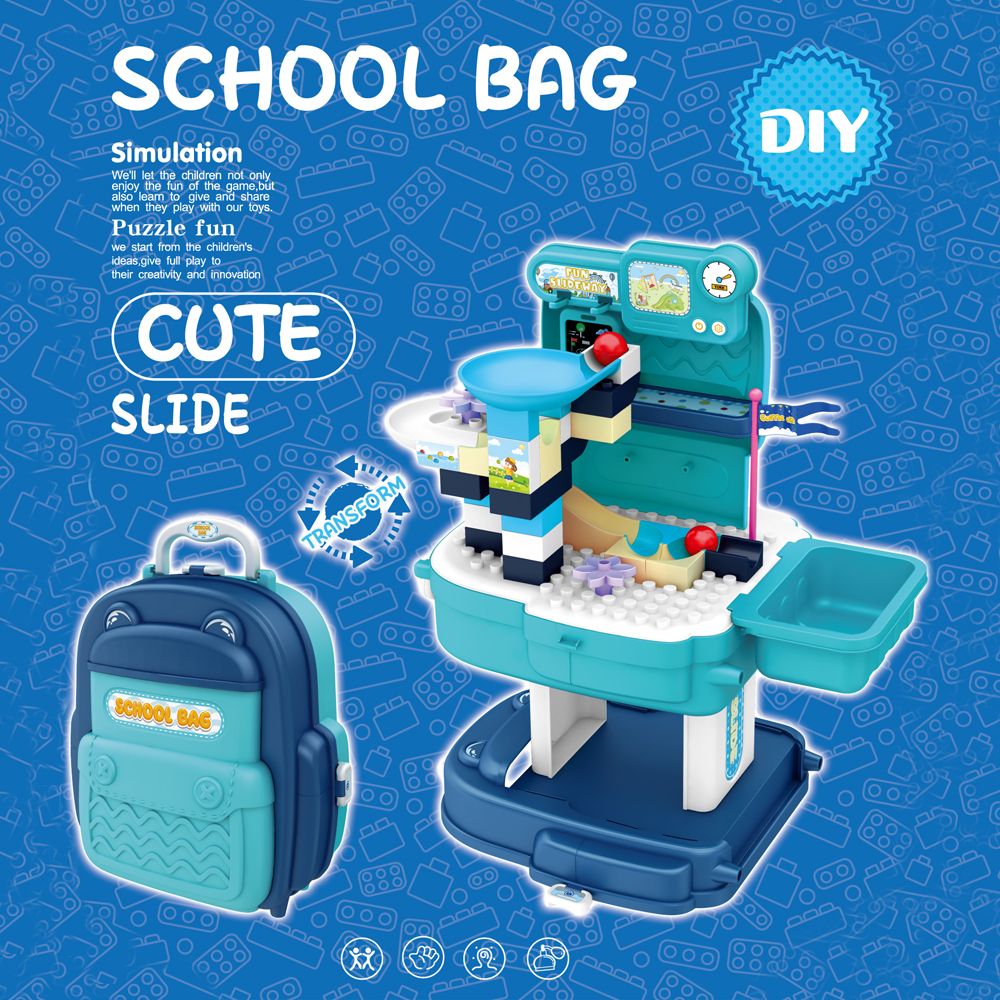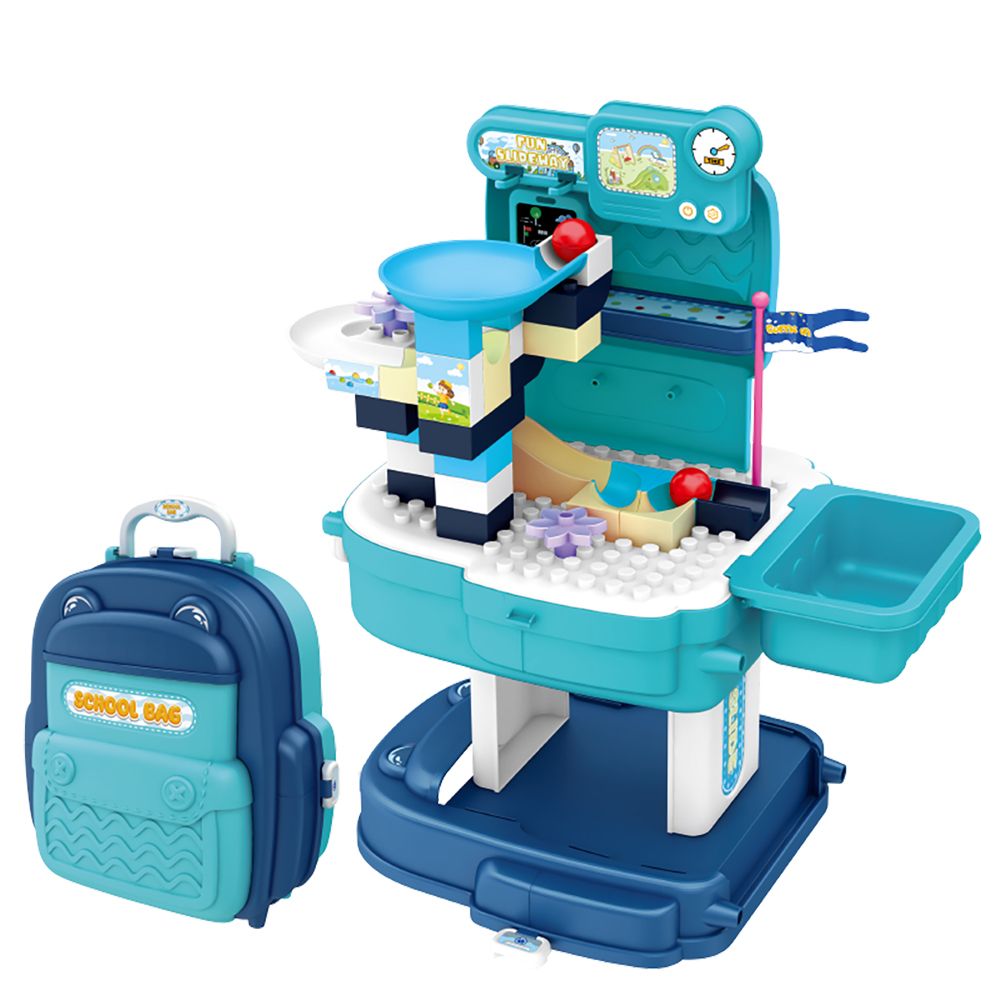 Little Story Role Play Theme Park With Slide And Block Toy Set School Bag (52 Pcs) - Blue, 2 - In - 1 Mode