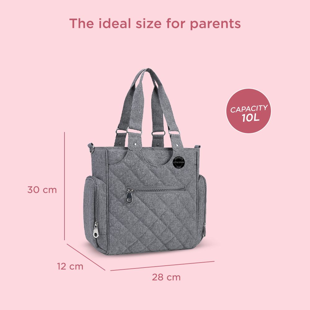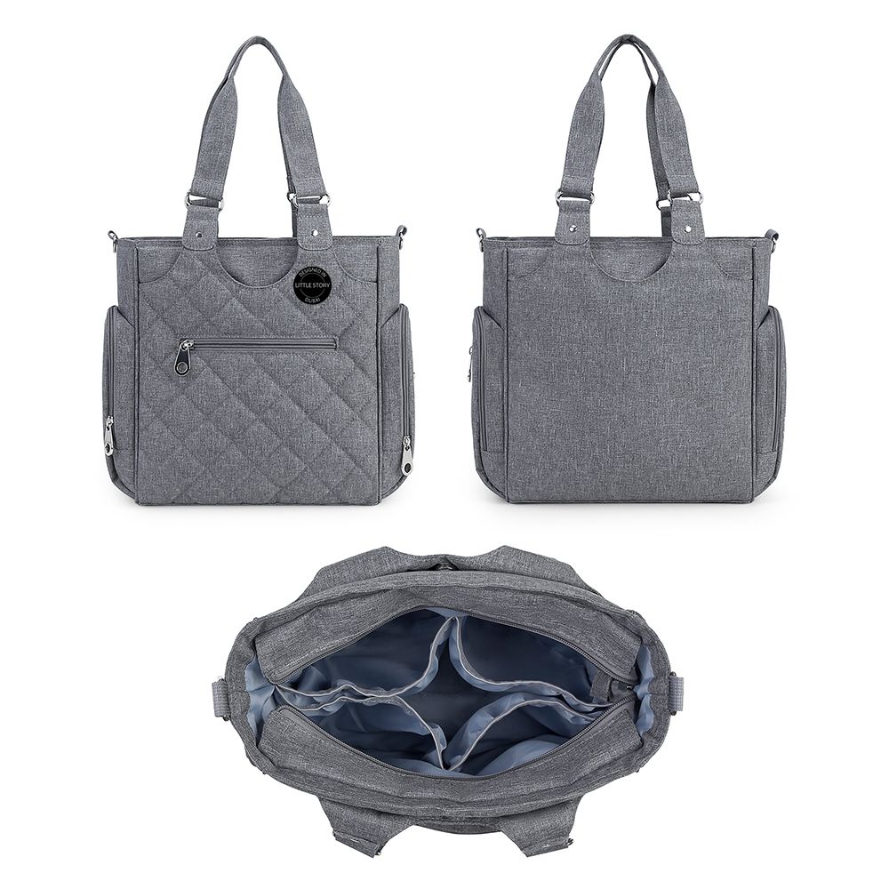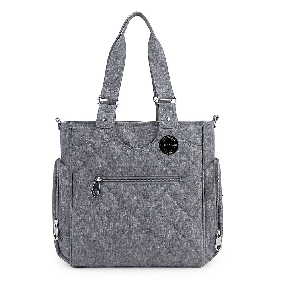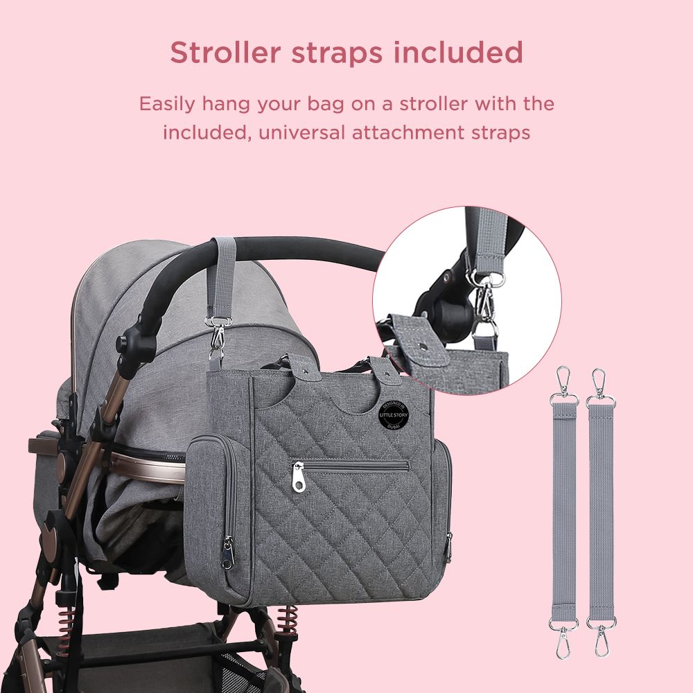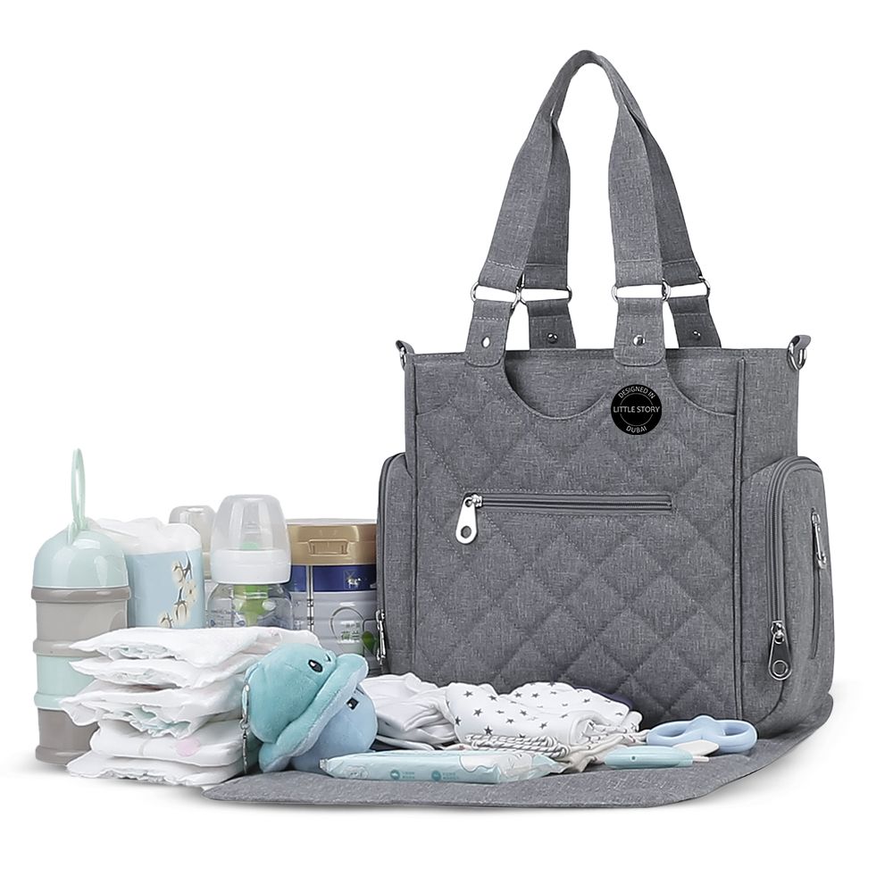 Little Story Set of 7 - Quilted Diaper Bag with Stroller Straps and Changing Mat - Grey