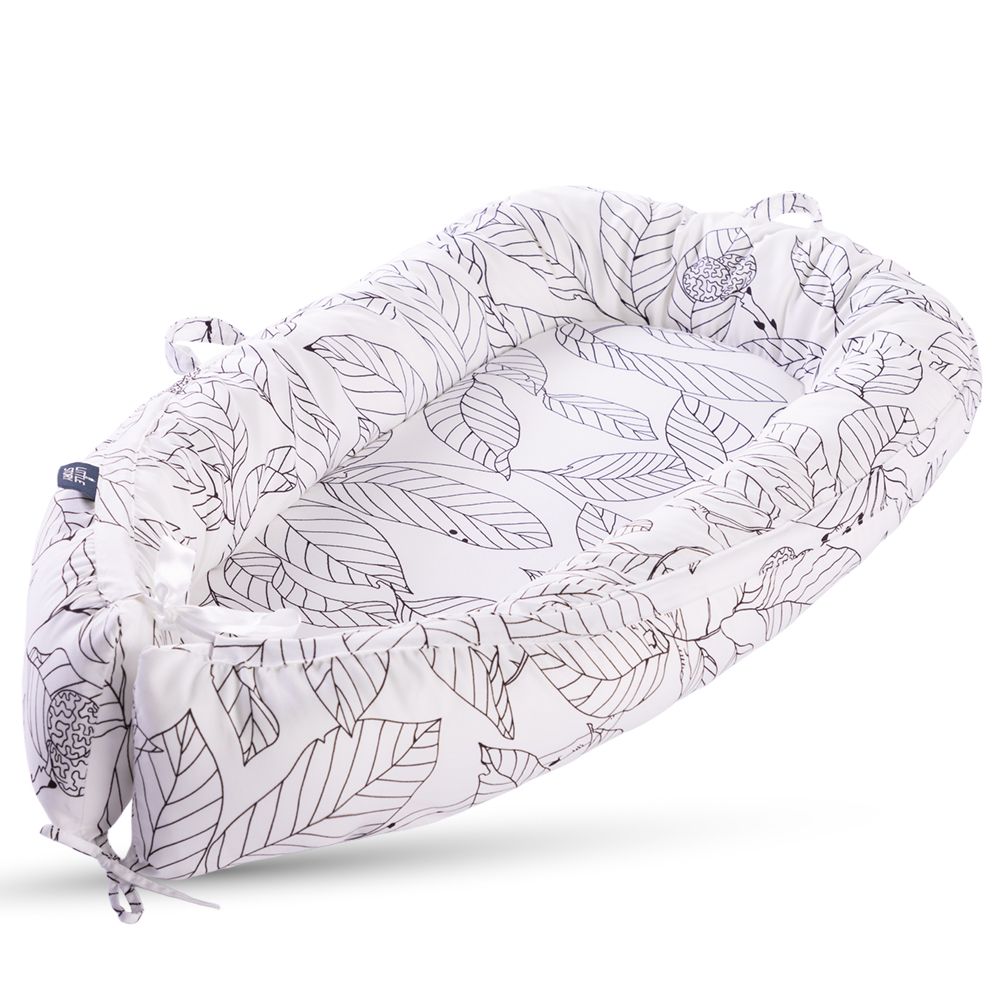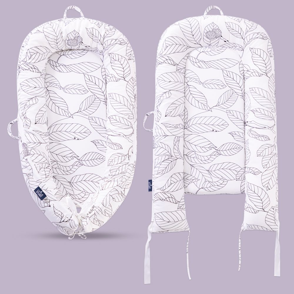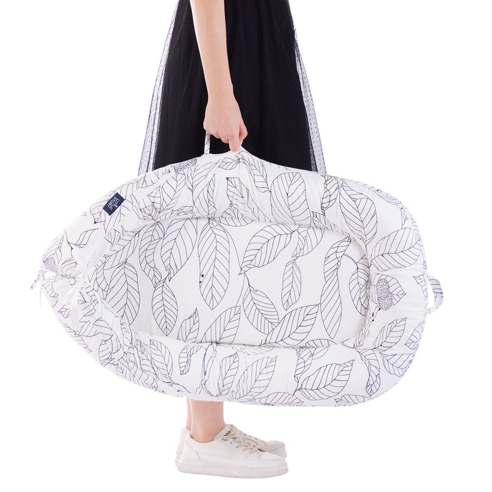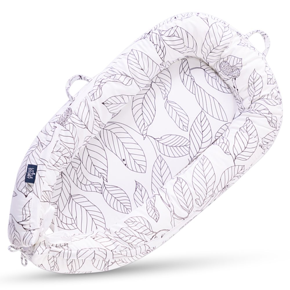 Little Story Soft Breathable Fiberfill Newborn Lounger Bed - Flora White Grey