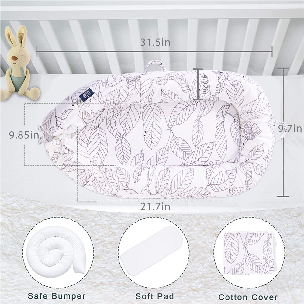 Little Story Soft Breathable Fiberfill Newborn Lounger Bed by SAMBOX is made of 100% Cotton Fabric Cover for Tube and Pad & Fiberfill, with extra side - padding, 4cm mattress comes with infinity hidden Zipper, Comes with One side is arrow pattern, and the other side is solid gray so you can switch between the two patterns inside and outside. Adjustable, simply loosen the cord at the end of the bumpers to make the size larger. The ends of the bumpers can be fully opened. Babies snuggle nest sleeper is 90cm long and 50cm wide. We also added extra Cush to the base making it 4cm for optimal support, can use it as a travel baby bed at hard flooring or hotel beds. It makes the perfect lounger, rest spot, tummy time aid and travel mat, this is newborn essentials must haves. Baby lounger cover upgrade for breathable Covers so you can still use your portable baby bed even on laundry day. The Zipper allows endless zipping of the covers without any snags or breaking like other baby lounger sleeper due to thick binding. Easy to wash and support machine washable, covers of bassinet, outer ring and pad are all detachable. Perfect for Gifts to new moms, baby showers, Christmas, and Halloween.