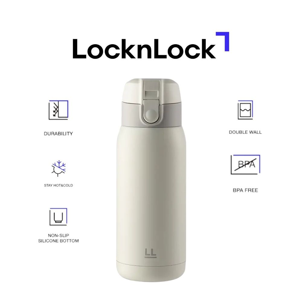 LocknLock Chubby Tumbler 370ml – Ivory, Stainless Steel Mug with Double-Wall Insulation & One-Touch Lid