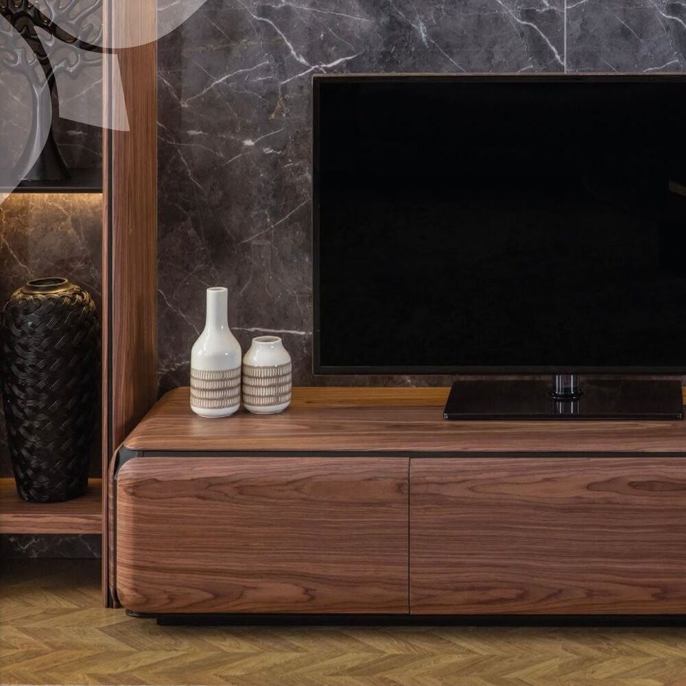 sleek and modern TV table design that embodies smooth lines and refined craftsmanship.