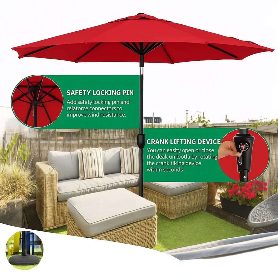 LuxeShade Red Outdoor Patio Round Umbrella with Waterproof Canopy & Steel Frame for Garden, Balcony & Poolside
