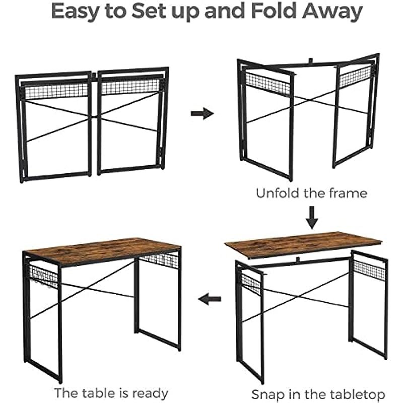 مكتب كمبيوتر قابل للطي من Vasagle LWD42X، مكتب للكتابة - بني ريفي