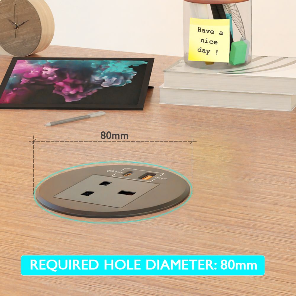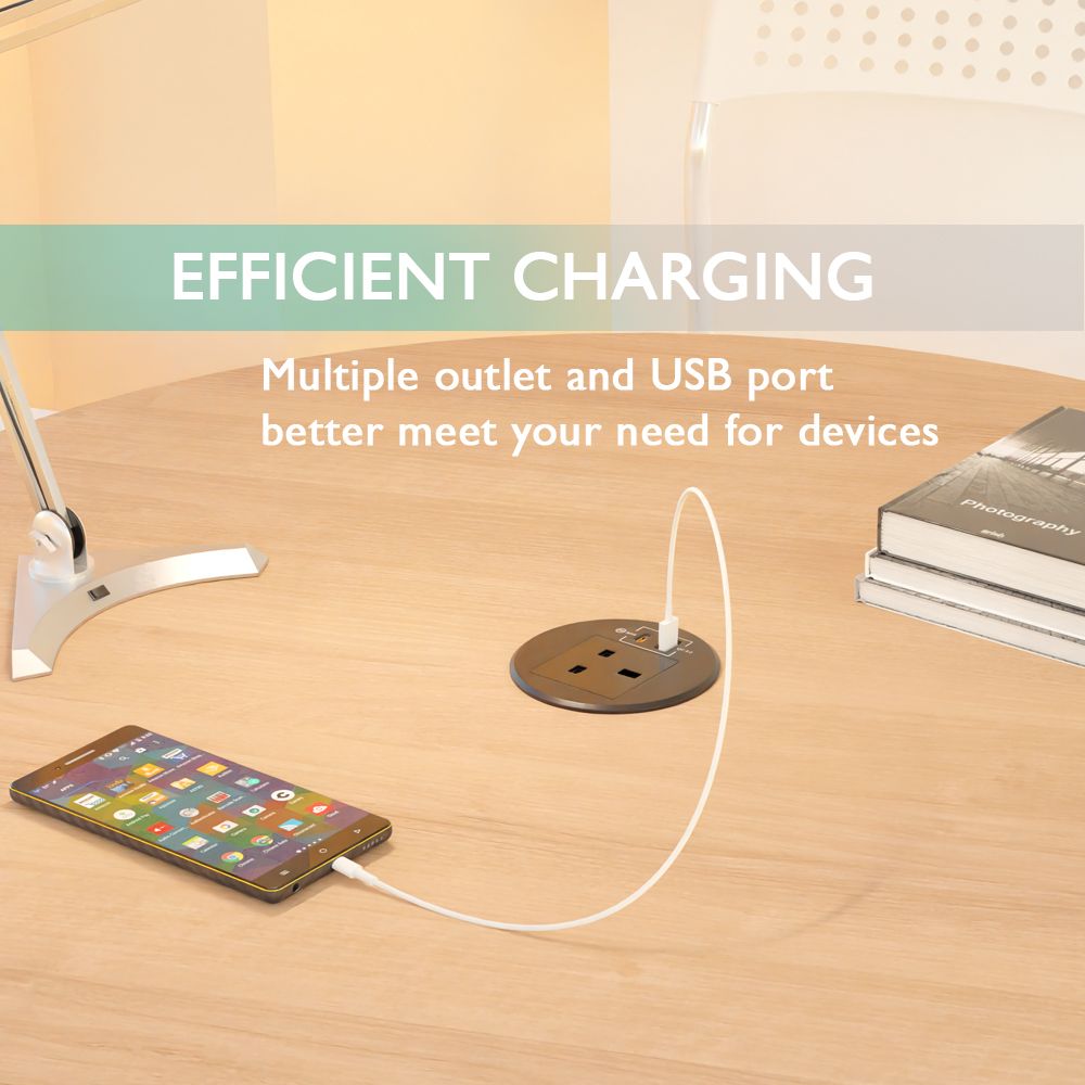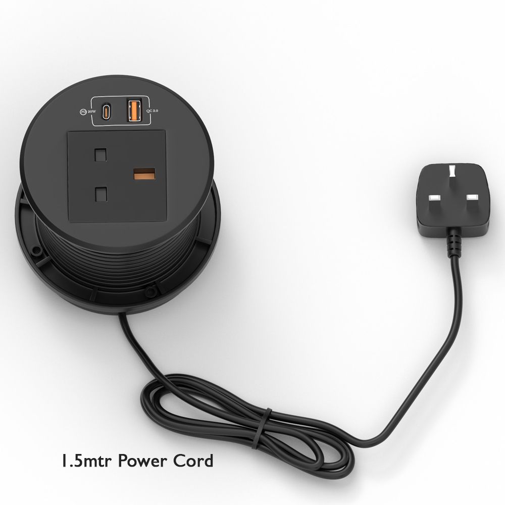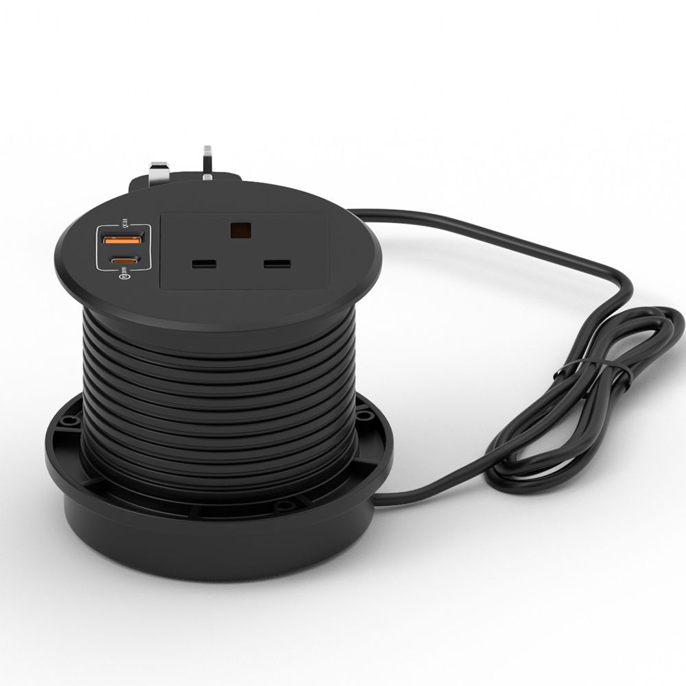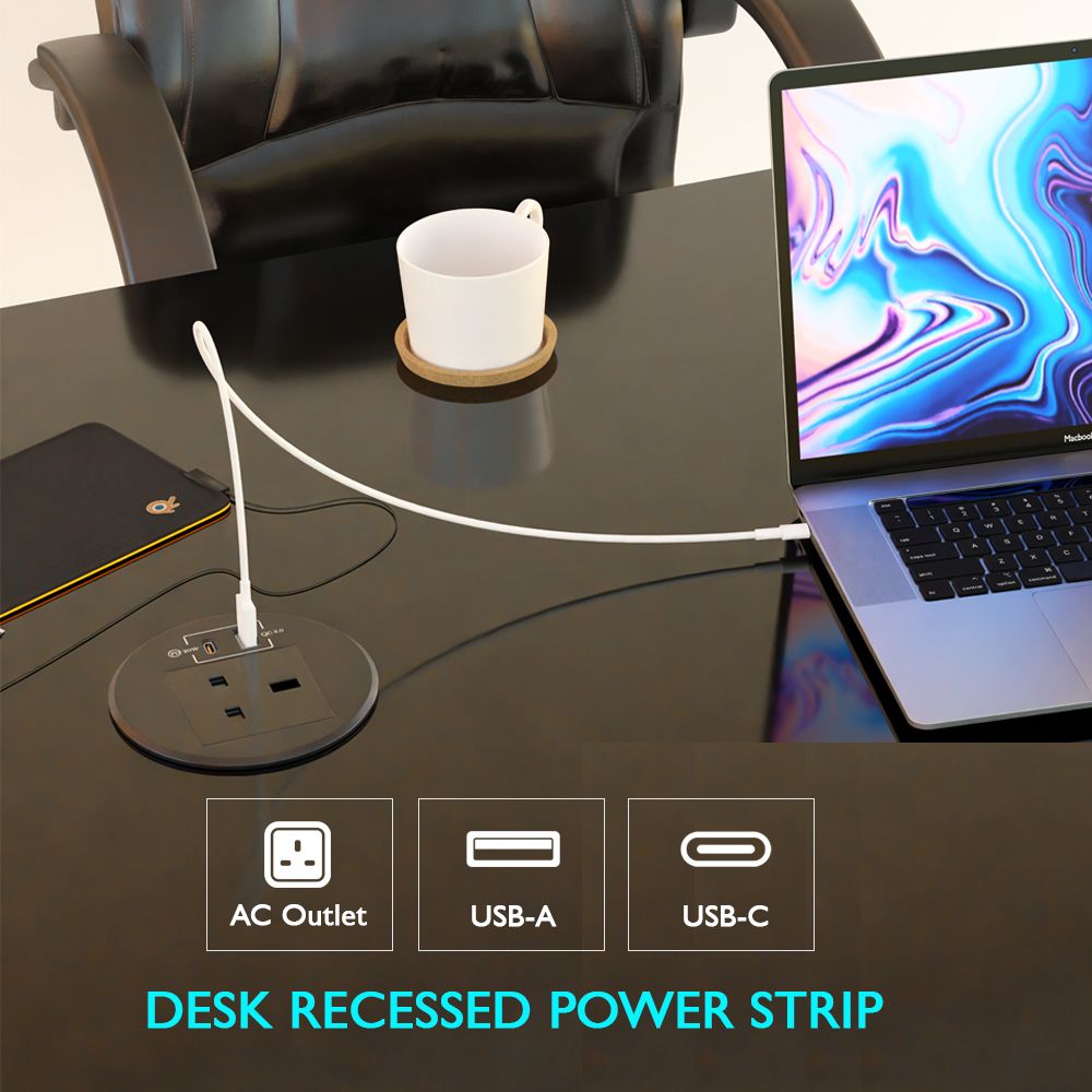 Mahmayi Modern BST-YMO12-A3 Recessed Power Socket with Wire Desk Power Stript C Outlet, USB-A, and USB-C for Efficient Charging Ideal for Home and Office - Black