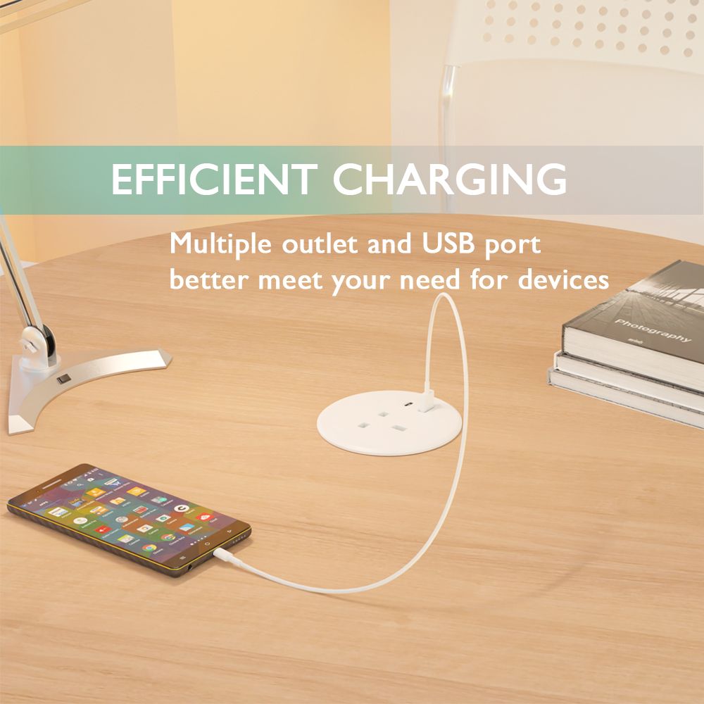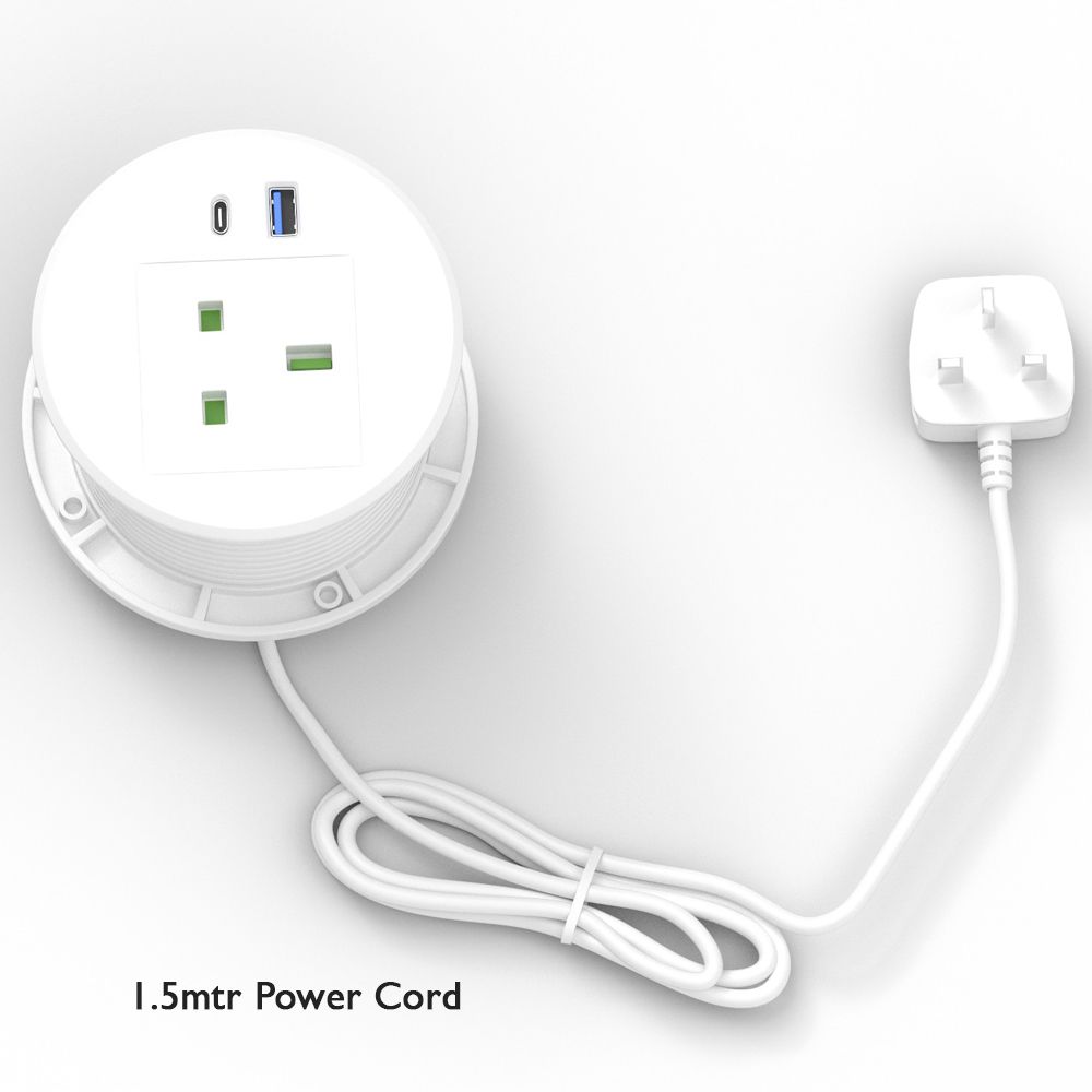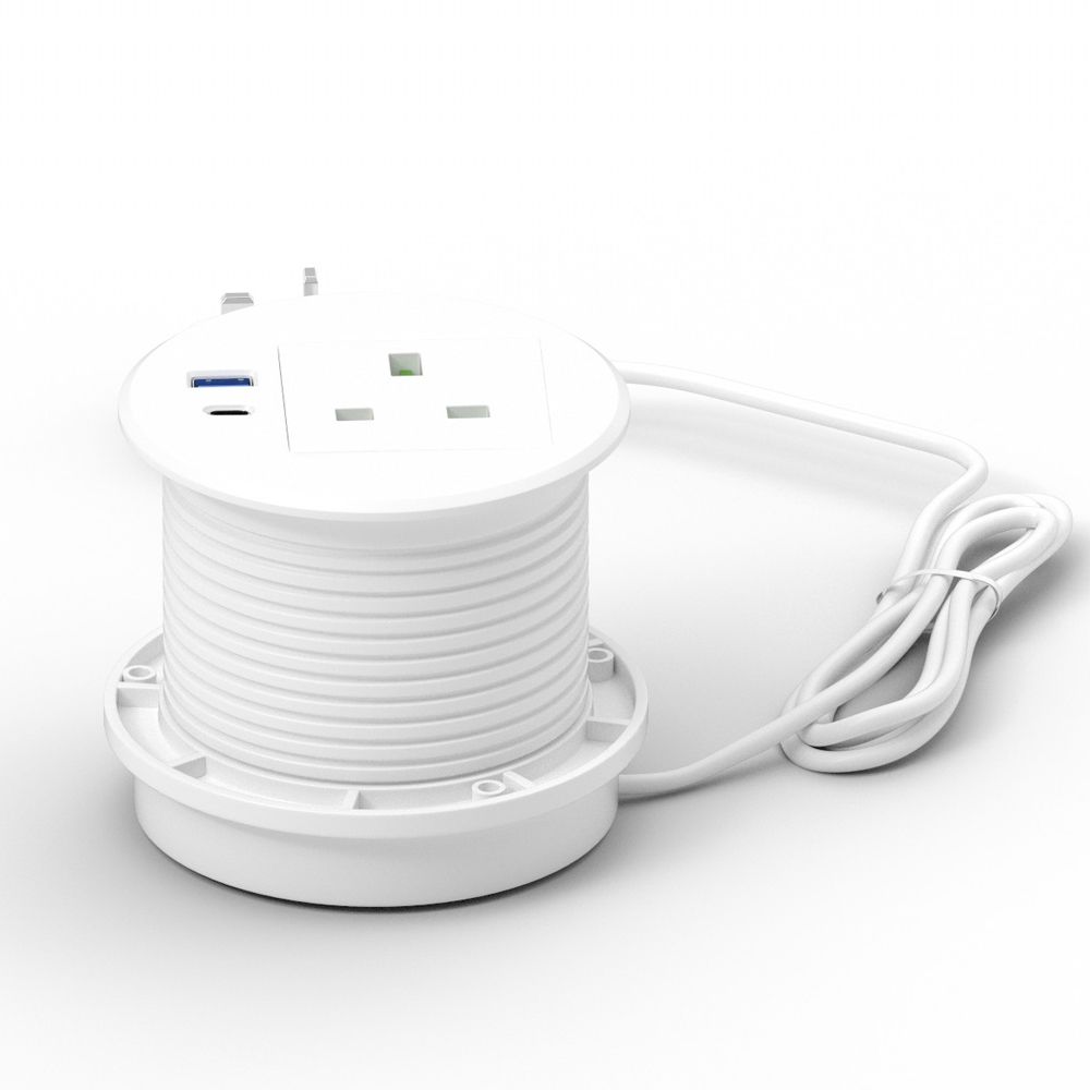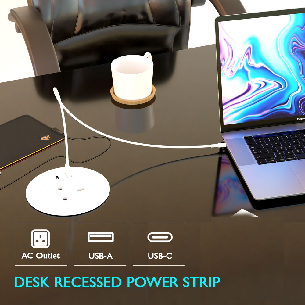 Mahmayi Modern Desk Power Socket with Wire Recessed Power Strip Featuring AC Outlet, USB-A, and USB-C for Efficient Charging Ideal for Home and Office - White