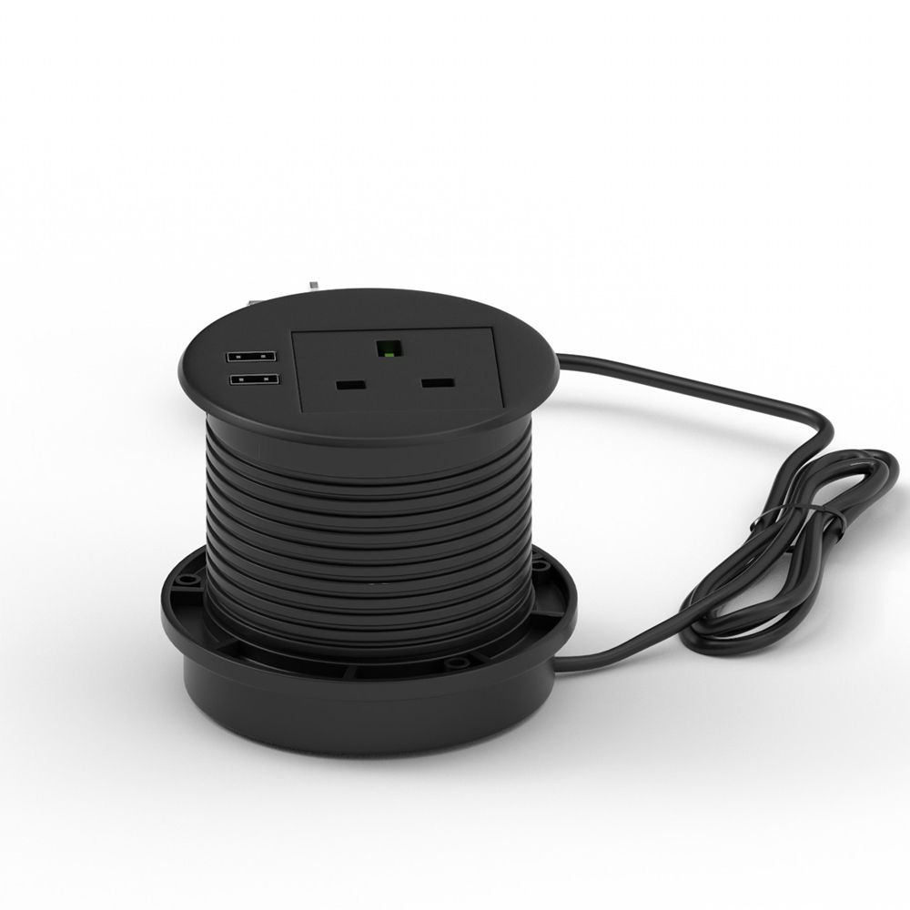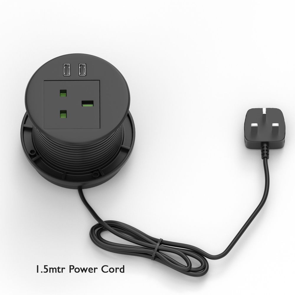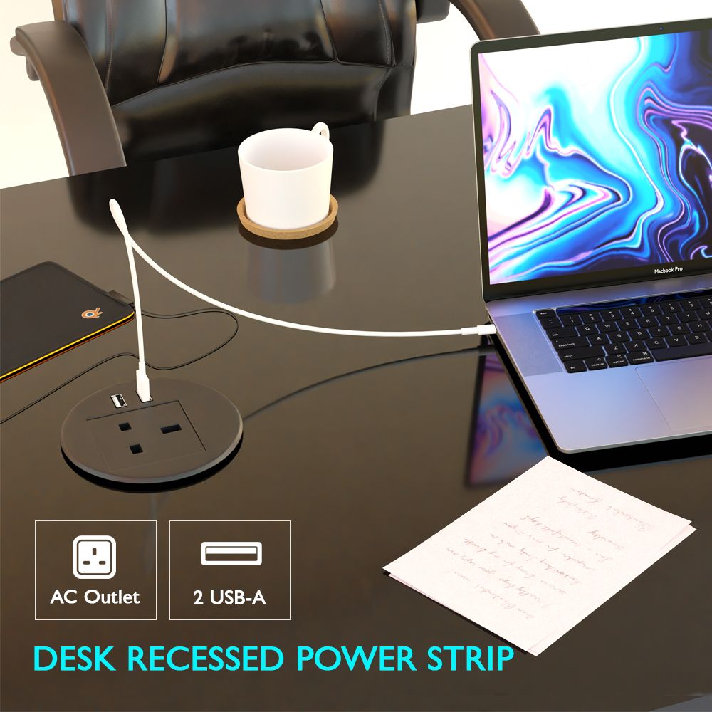 Mahmayi Modern Recessed Power Socket with Wire Efficient Charging Desk Power Strip for Easy Access and Tidy Workspace Ideal for Home and Office Use - Black
