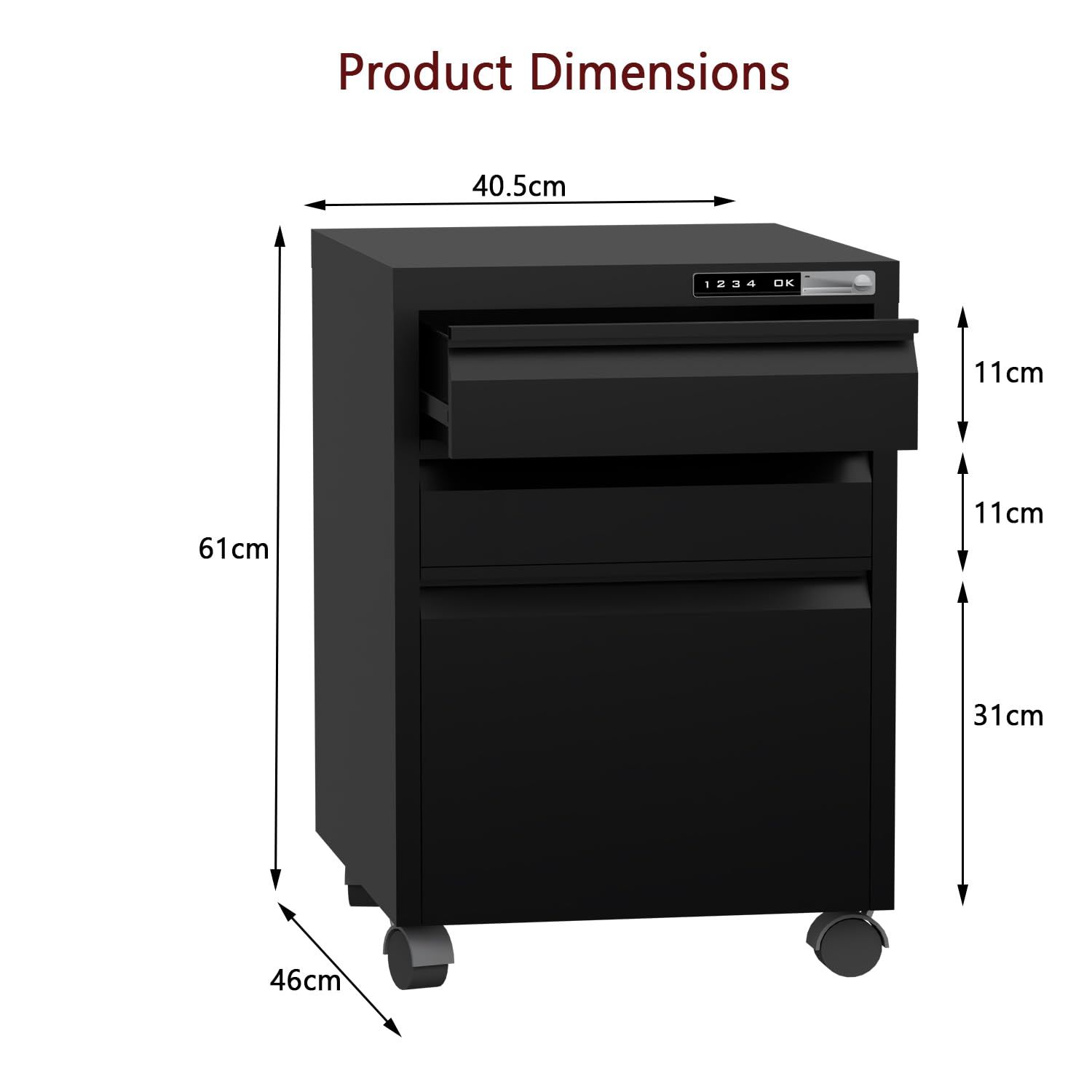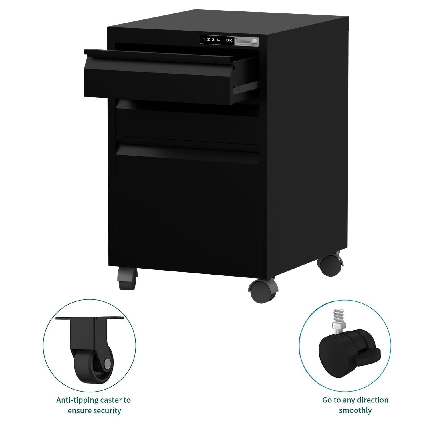 Mahmayi OEM File Cabinet with Touch Screen Digital Lock, Portable Cabinet with 3 Storage Drawer, Vertical File Cabinet, Caster Wheels Ideal for Office - Black
