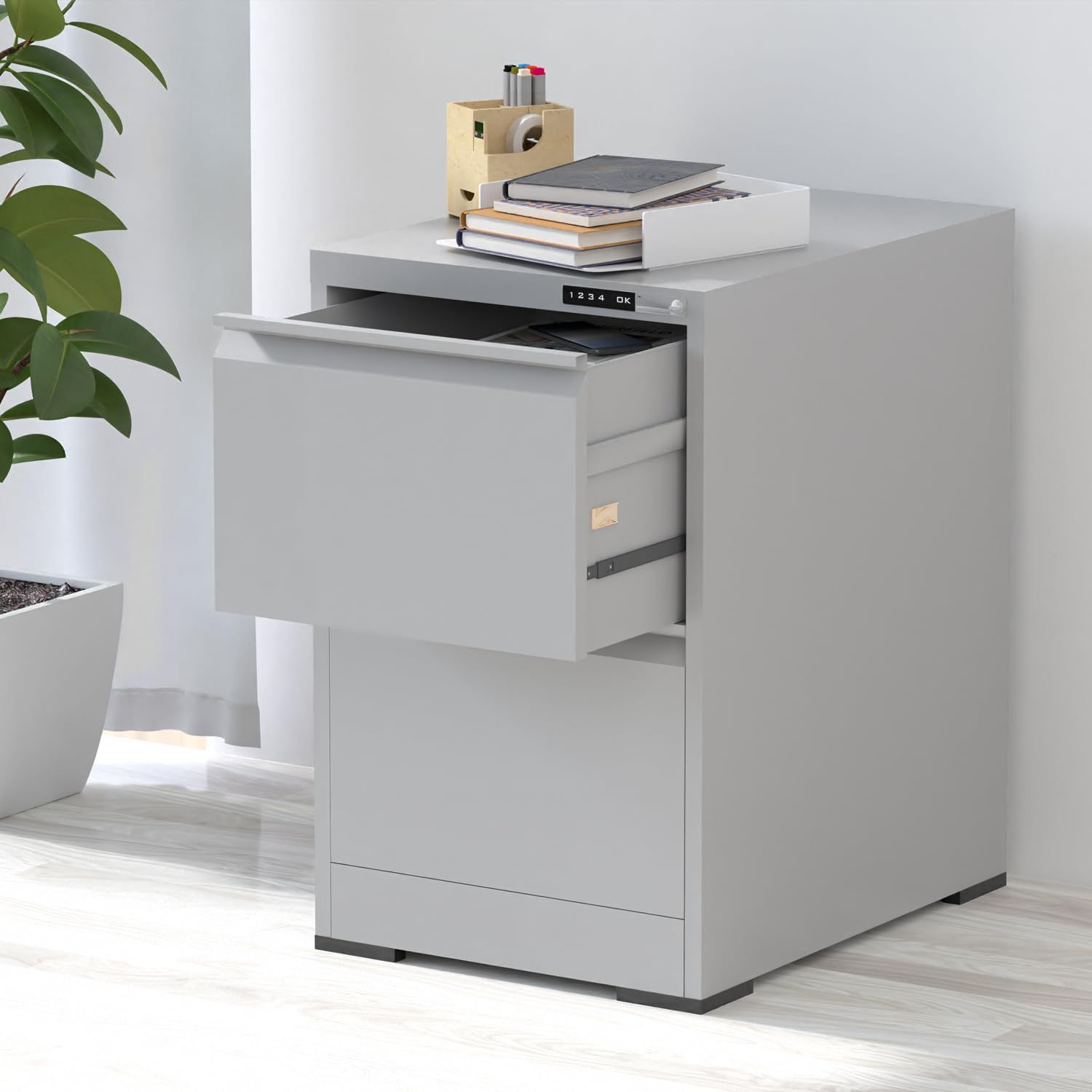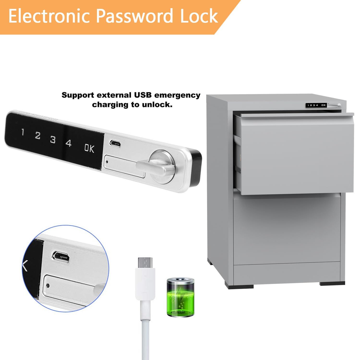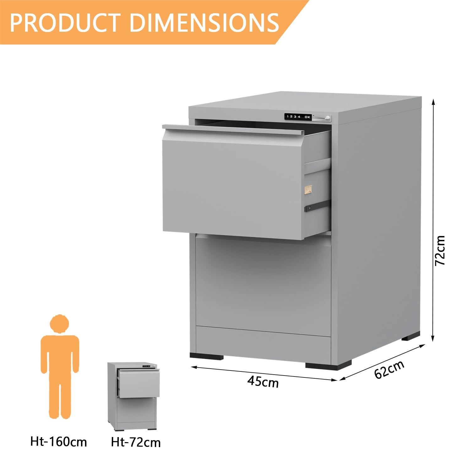 Mahmayi Victory Steel Japan OEM File Cabinet with Touch Screen Digital Lock with USB Charging Support, Portable Cabinet with 2 Storage Drawer, Vertical File Cabinet, Ideal for Office - Grey