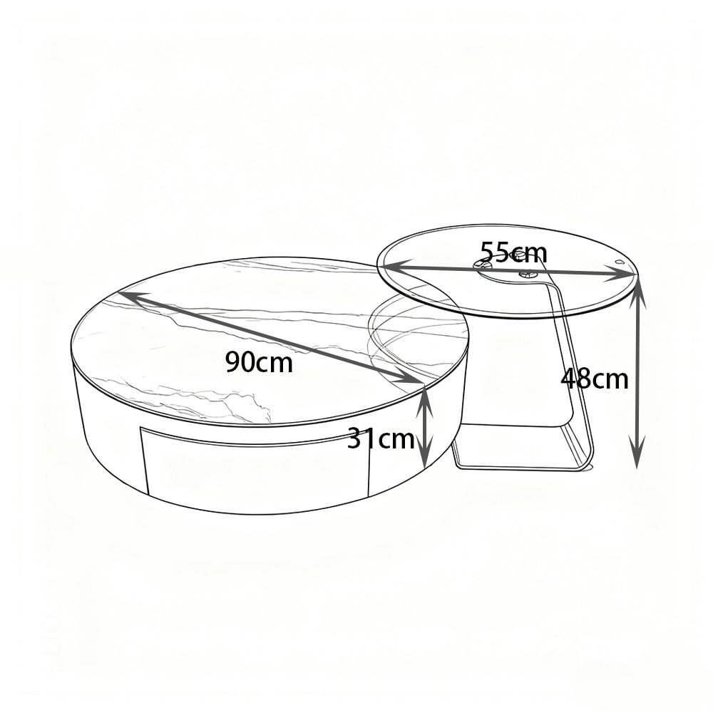 - Large Table: Diameter 90cm, Height 31cm (with drawer)
