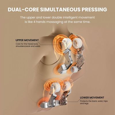 يتيح الضغط المتزامن ثنائي النواة حركة ذكية مزدوجة تحاكي تدليك أربعة أيادي في نفس الوقت، لتعزيز تجربة التدليك.