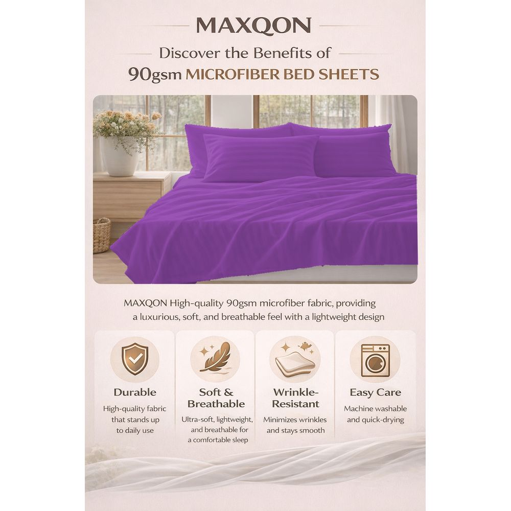MAXQON 3‑Piece Premium Microfiber Bed Sheet Set – Double Size Flat Sheet (230x255 cm) with 2 Pillowcases (50x75 cm) – Ultra‑Soft, Breathable, Wrinkle‑Resistant Fabric – Ideal for Queen/King Mattresses – Perfect for Home & Hotel Use, Purple