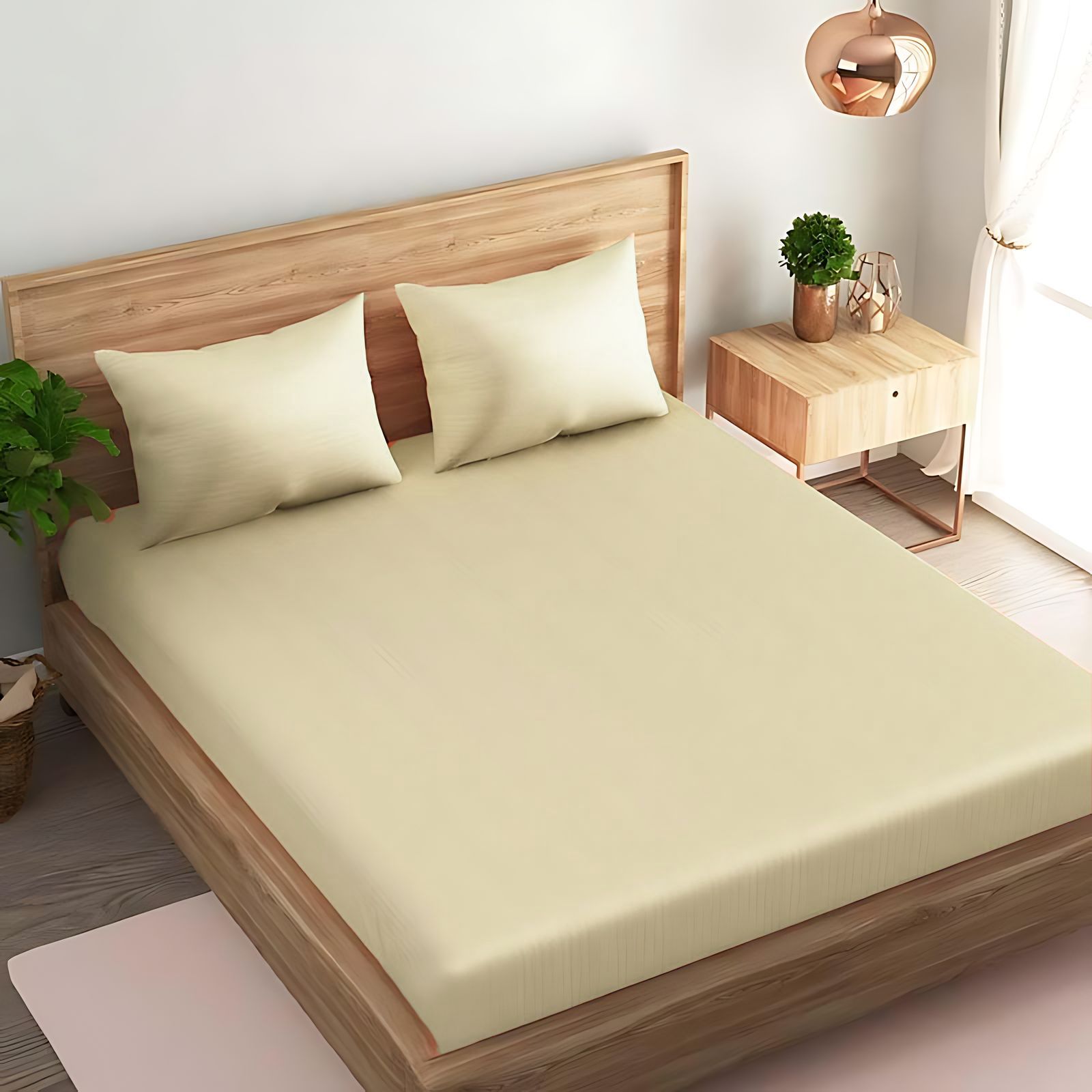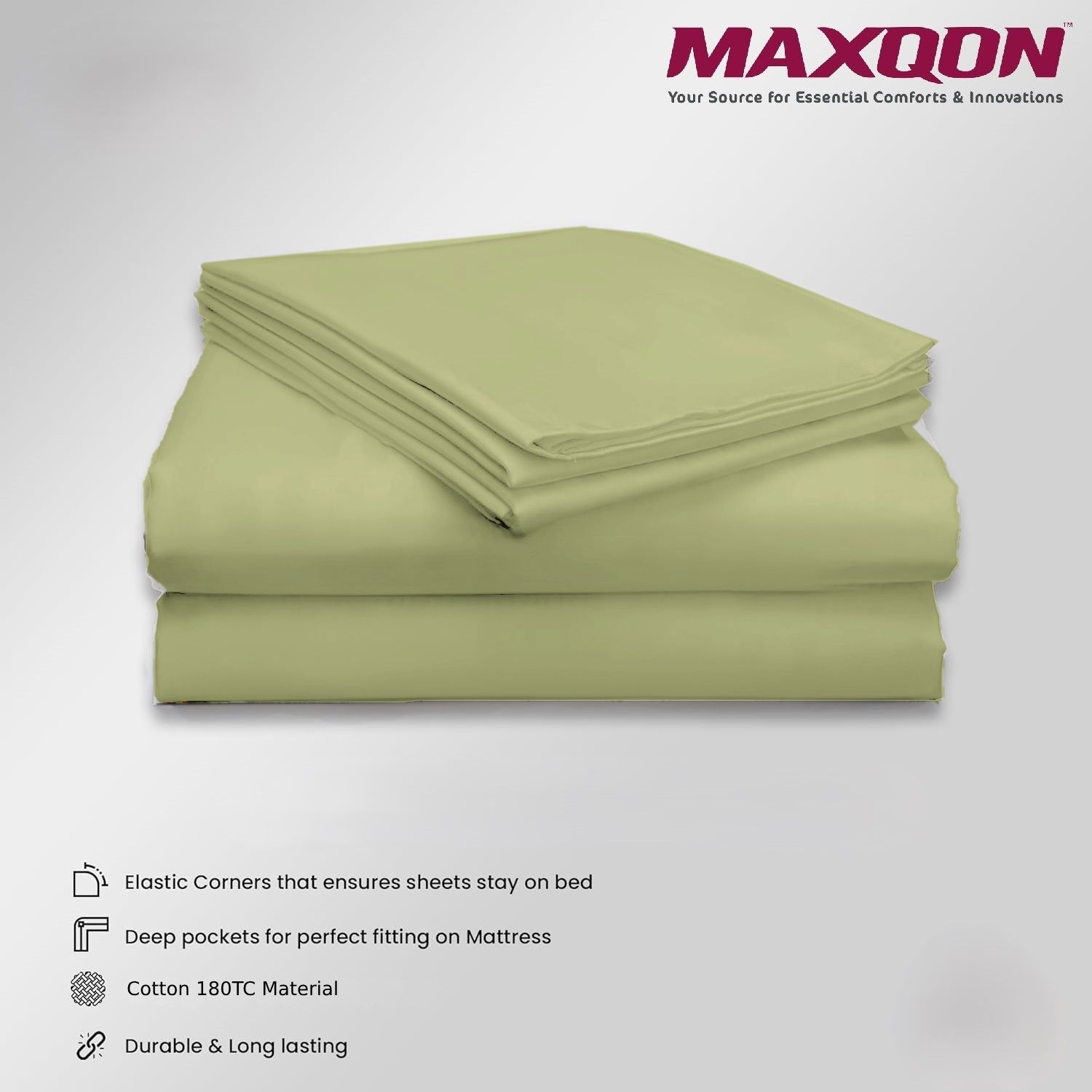 MAXQON Cotton Tc180 Fitted Bed Sheets + 1 Pillow Covers, Single (90x190+20CM), Color Brown