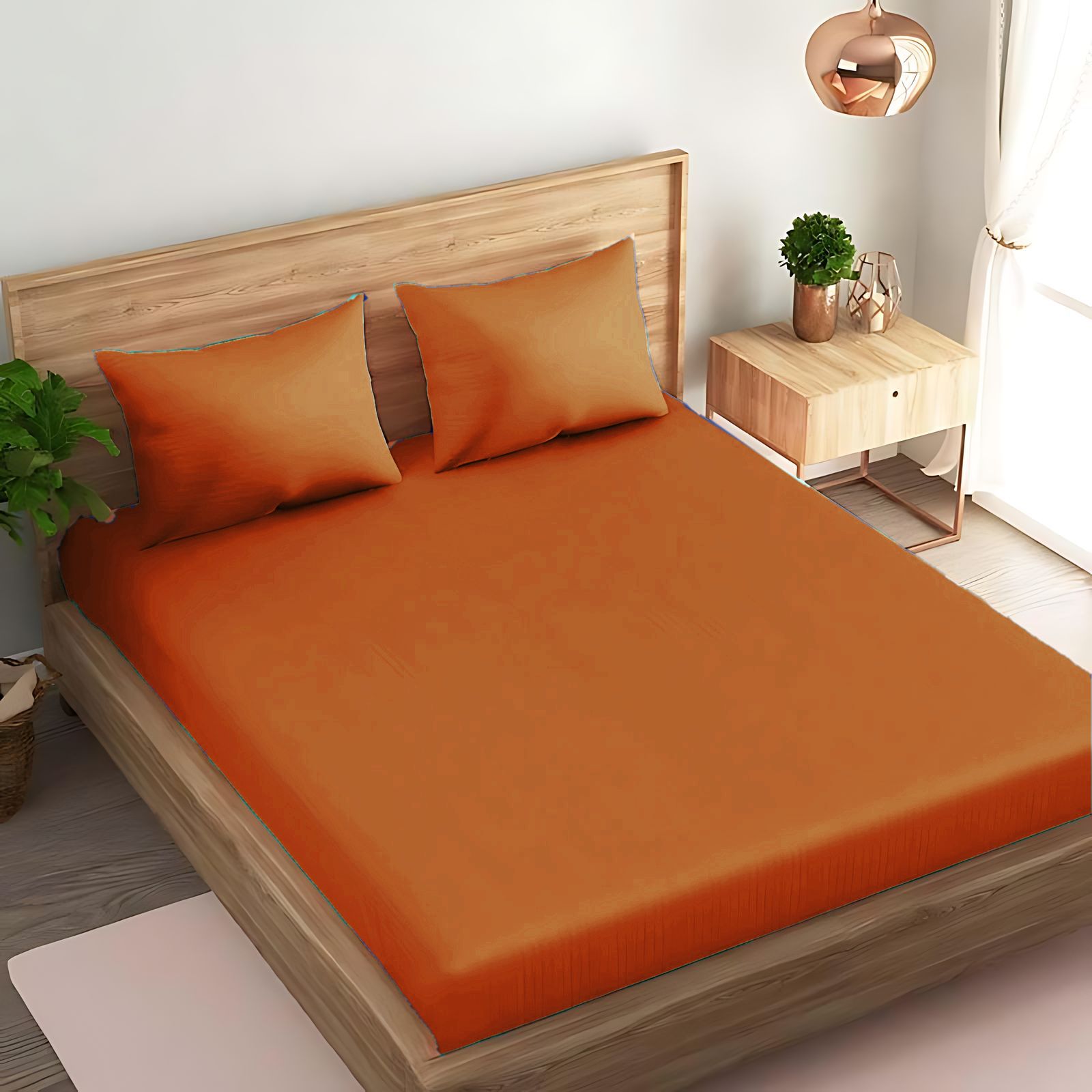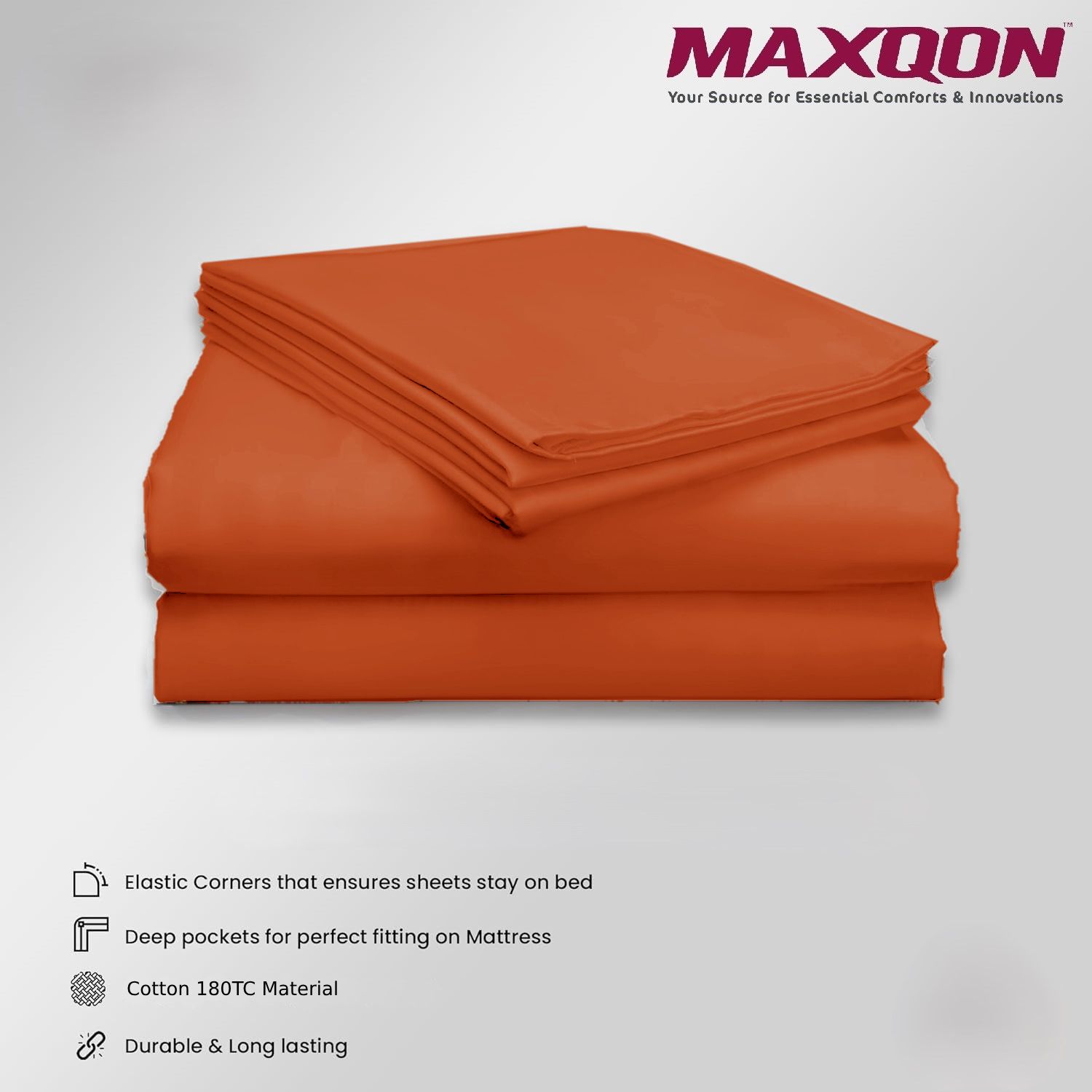 MAXQON Cotton Tc180 Fitted Bed Sheets + 2 Pillow Covers, Super king (200x200+25CM), Color Brown