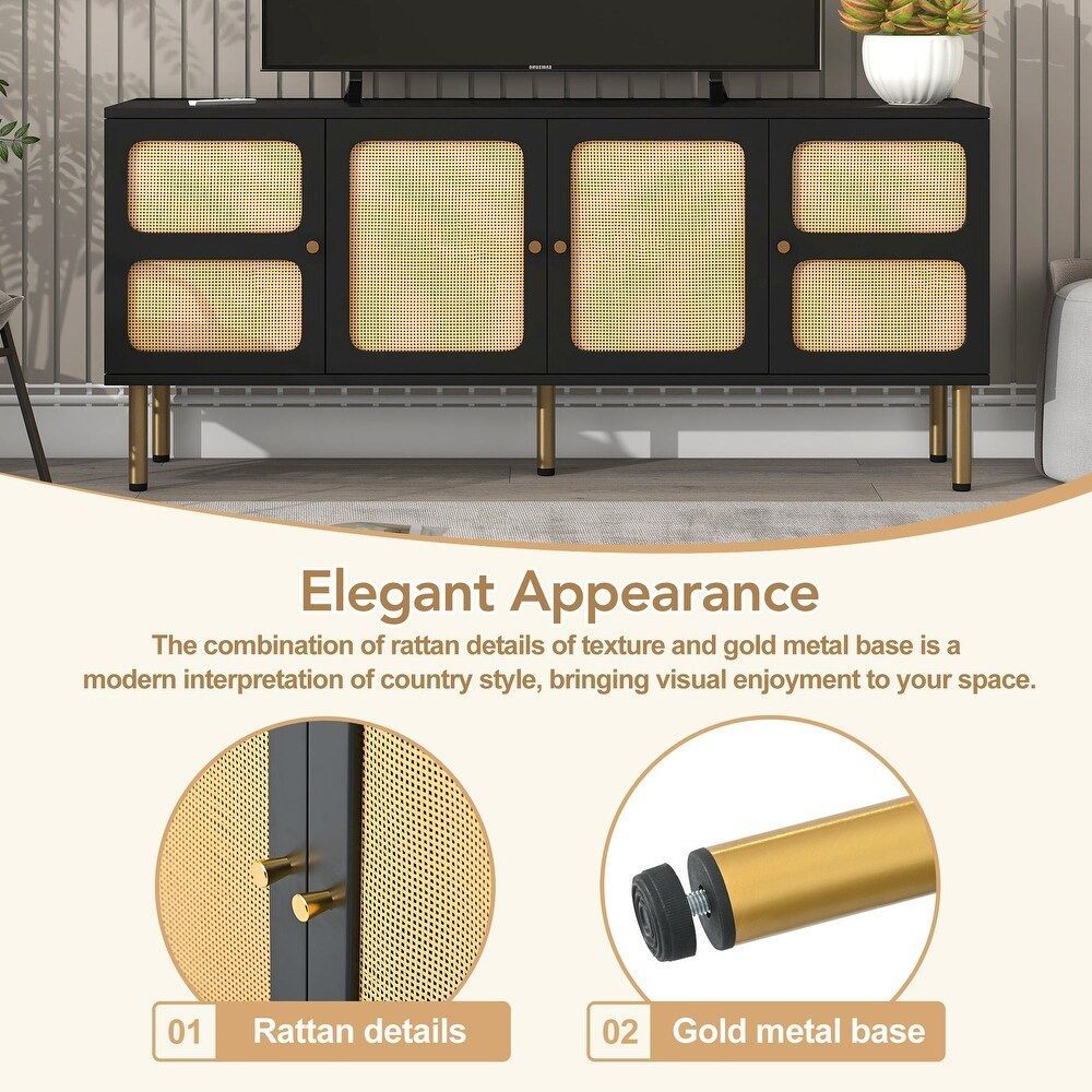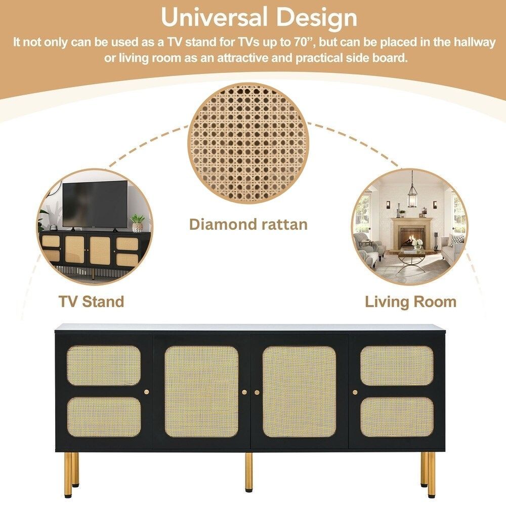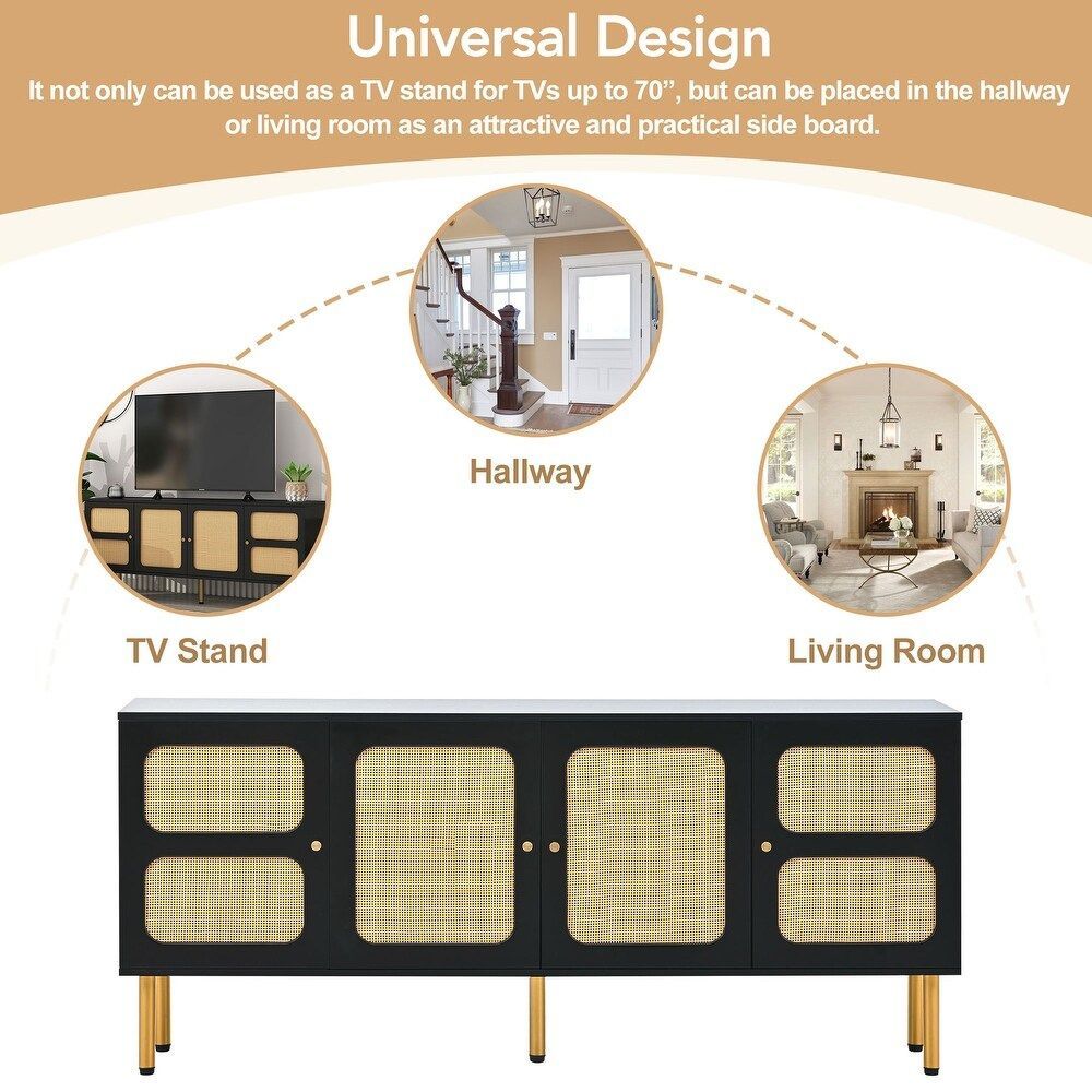 وحدة تلفزيون من خشب المانجو الصلب من Quesera لأجهزة التلفاز حتى 75 بوصة مع مساحة تخزين من الروطان الطبيعي