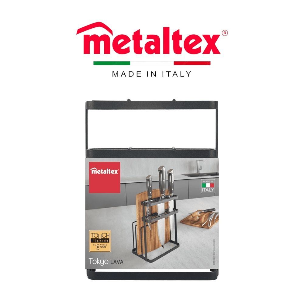 Bring both elegance and efficiency to your kitchen with the Metaltex Tokyo LAVA Knife & Cutting Board Rack