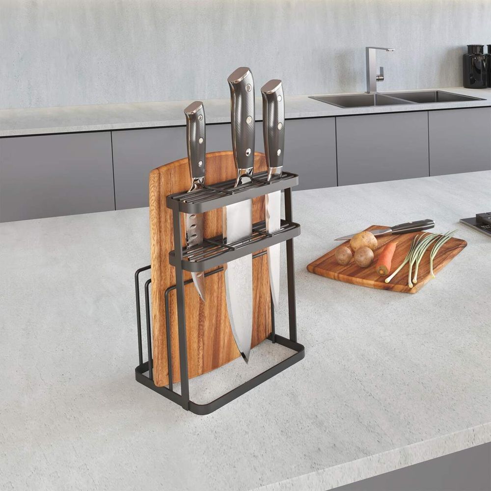 Designed to combine style and practicality, this sleek organizer features space for up to 15 knives and 2 cutting boards, keeping everything neatly in place