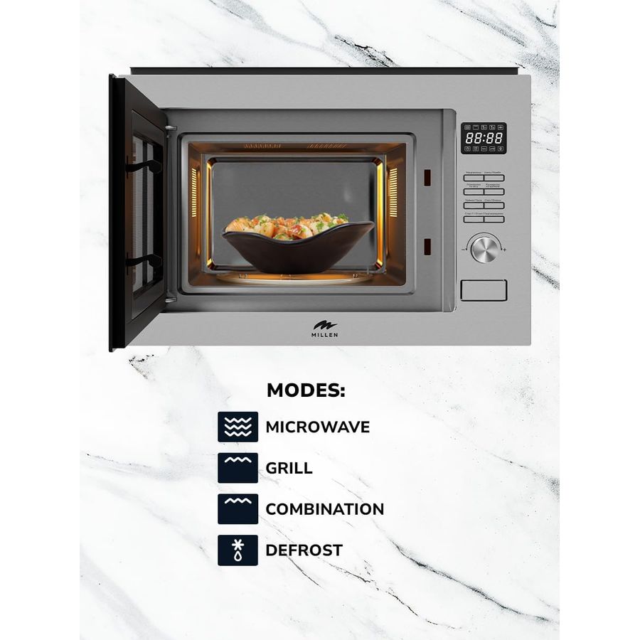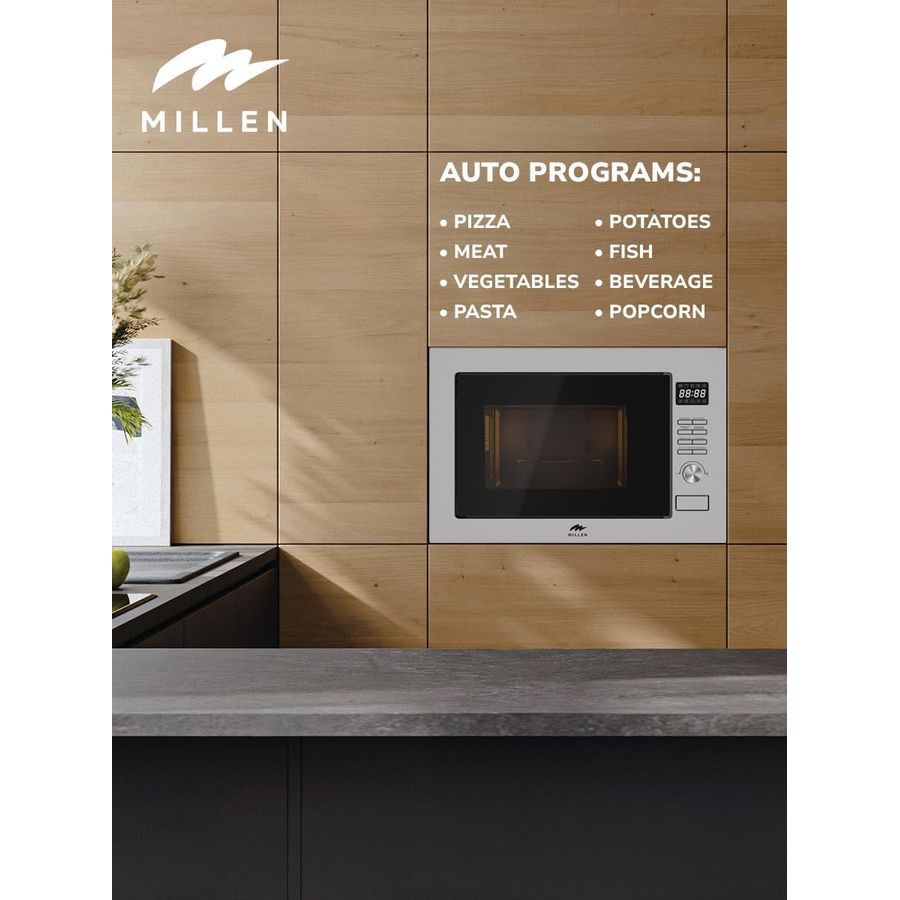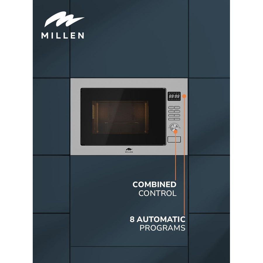 MILLEN Microwave Oven, 25L, 3Y Warranty, Stainless Steel Finish, Mechanical Control, 900W Microwave Power, 1000W Grill Power, 8 Automatic Programs, MBW 381 SX - Silver