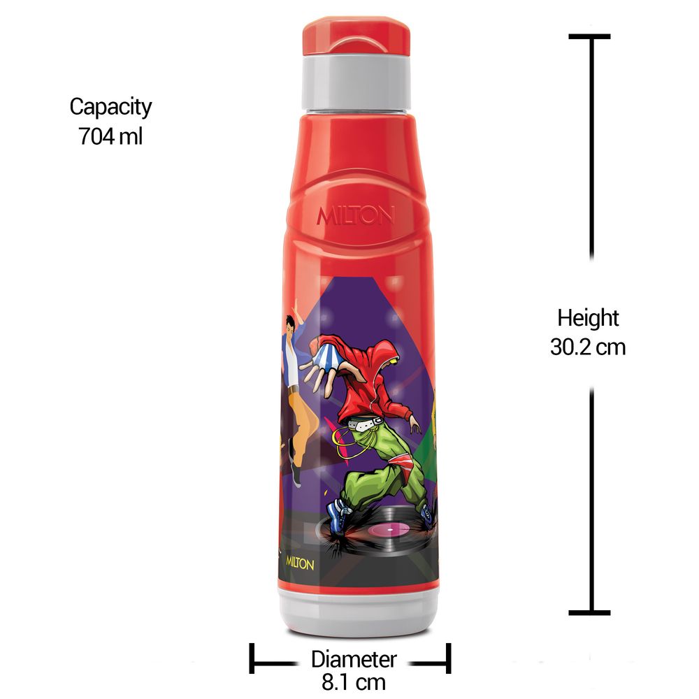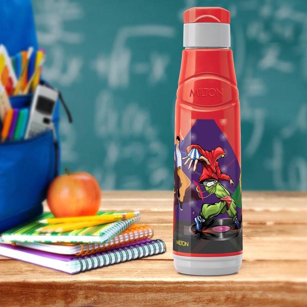 Milton Kool Fun Water Bottle by SAMBOX is an insulated bottle to keep drinks hot or cold for hours. Its durable, colorful and comes attached with a leak - proof flip - lid while its compact structure ensures that it fits easily in any school bag, making it an ideal choice for your kids. Milton Kool Fun is Specially designed to keep your young one's drinks cold for hours. It comes with attractive patterns and has a flip - lid for smooth sipping which makes this bottle their favorite to drink water. This bottle is your kid's best friend! which is important for kids to stay hydrated at home, school, play & outdoors. It is made of food - grade plastic material, which can withstand for daily use with ease.