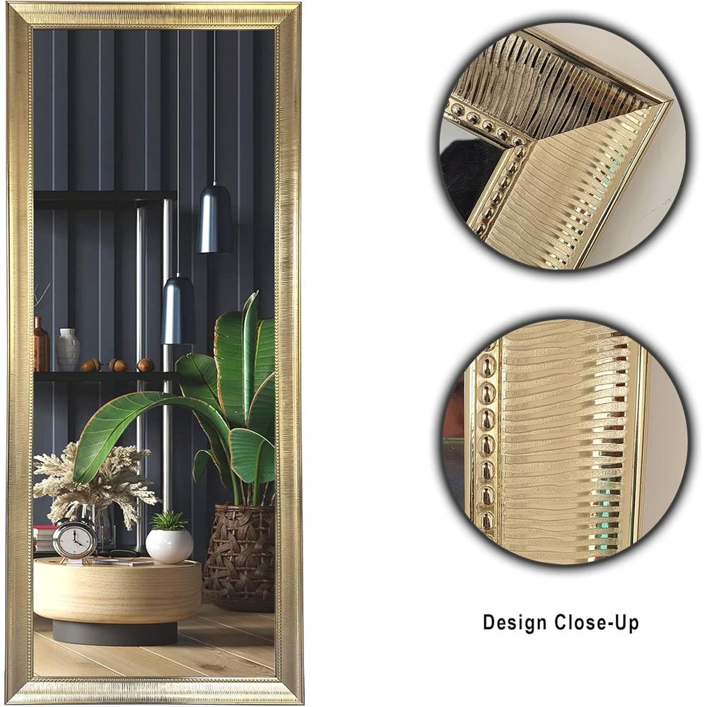 Mirror Full Length Stand 193cm x 83cm Standing Hanging or Leaning Against Wall, Large Rectangle Bedroom Mirror Floor Mirror Dressing Mirror Wall-Mounted Mirror, PVC Frame - Golden