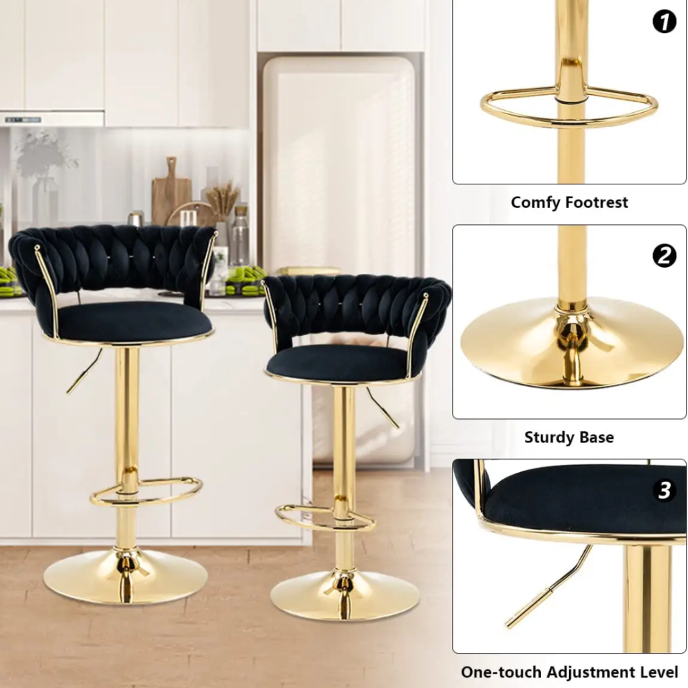 Modern Cafe Bar Stool Chair With Golden Metal Frame (Black)