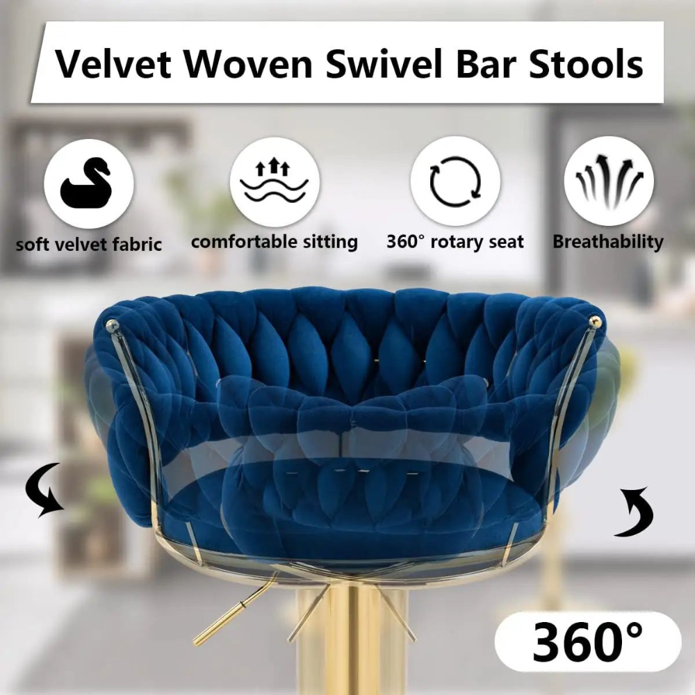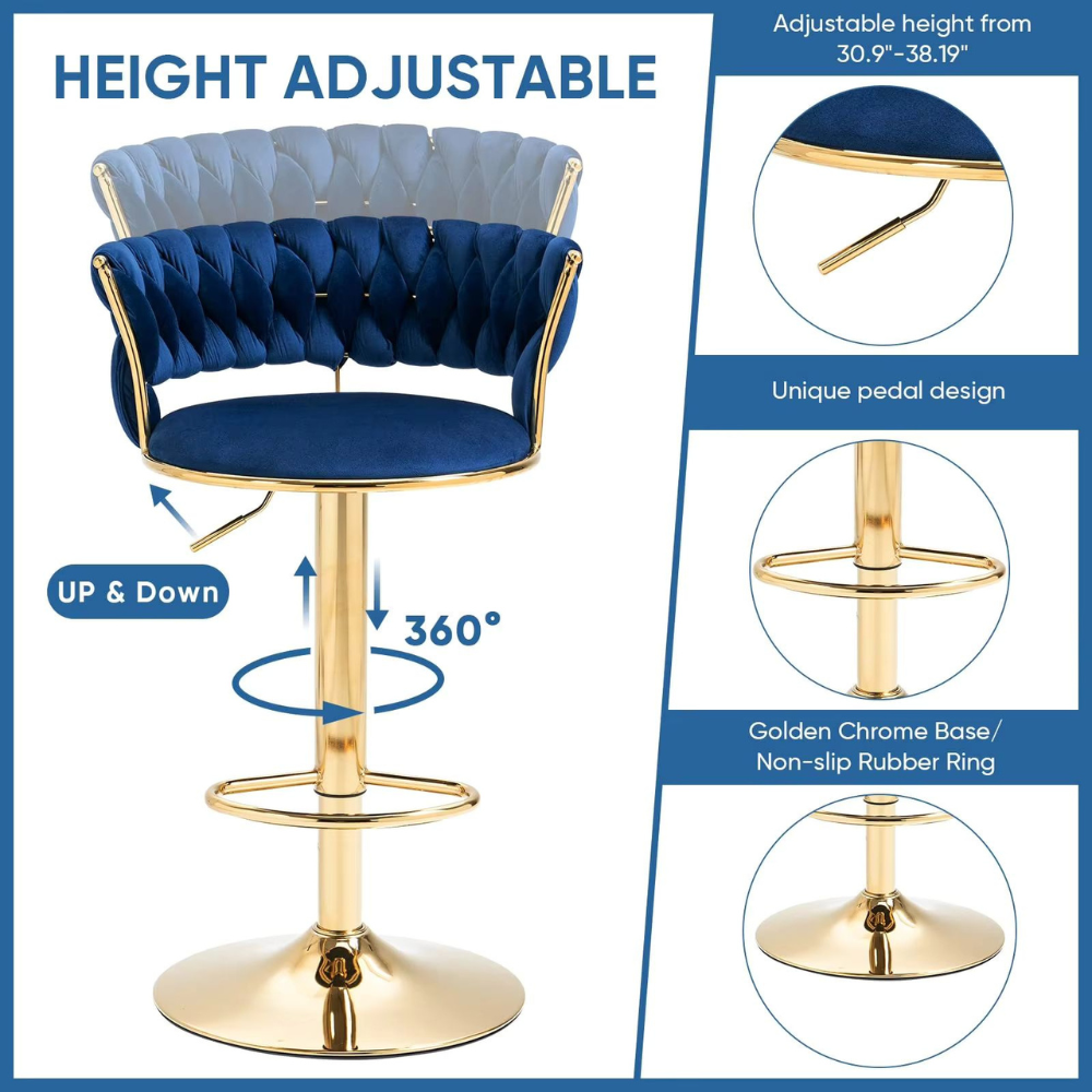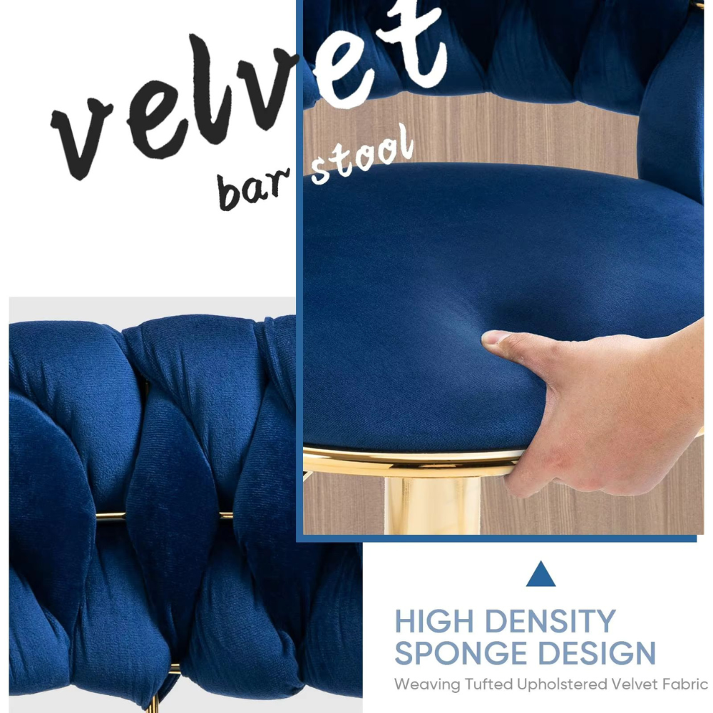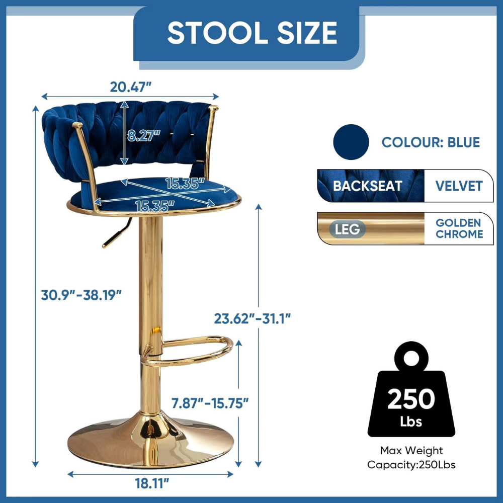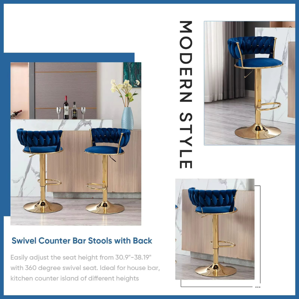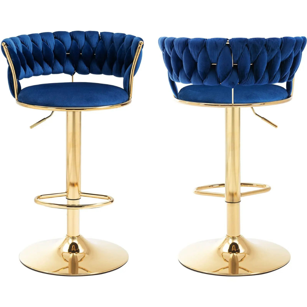 Modern Cafe Bar Stool Chair With Golden Metal Frame (Blue)