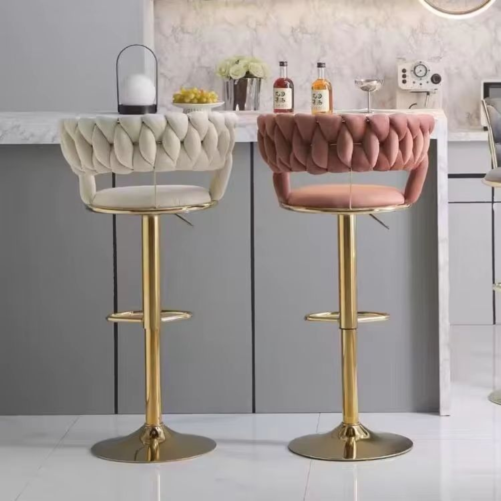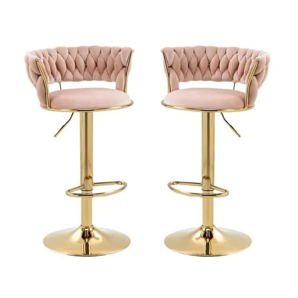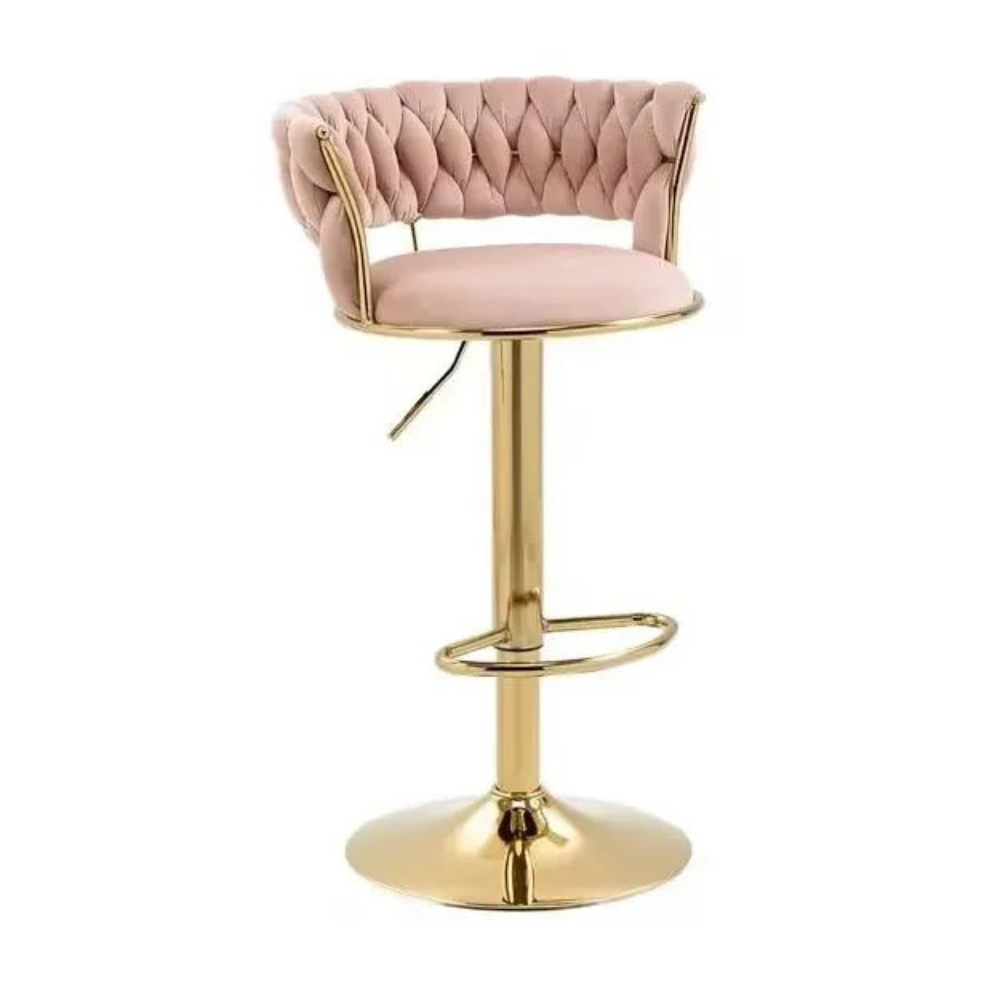 Modern Cafe Bar Stool Chair With Golden Metal Frame (Pink)