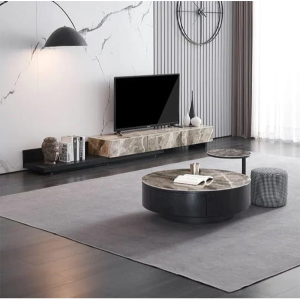 Modern Living room Table Set, TV Stand and Coffee Table, Attractive Design Storage Drawers Durable Materials Marble Top