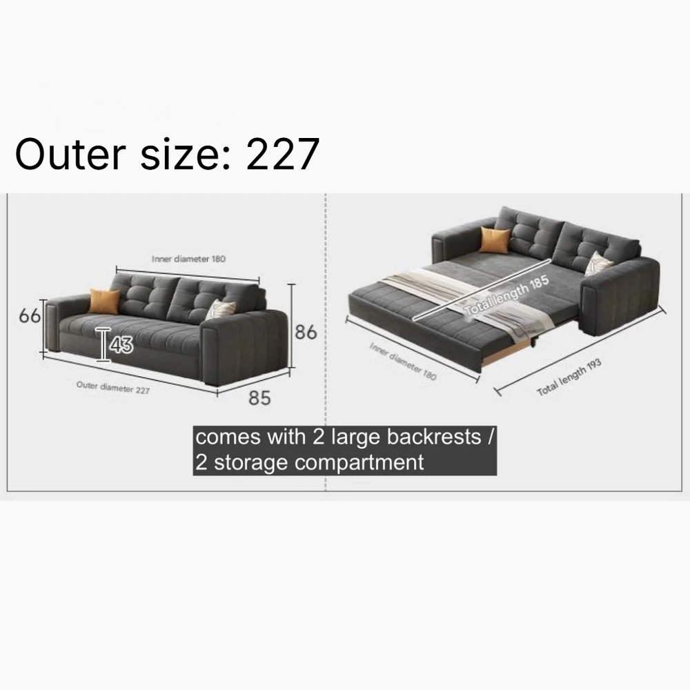 Modern Pull-Out Sofa Bed – Convertible Sleeper Couch with Storage – Space-Saving Upholstered Sofa Bed with Cushions – Large Capacity 227 Outer size