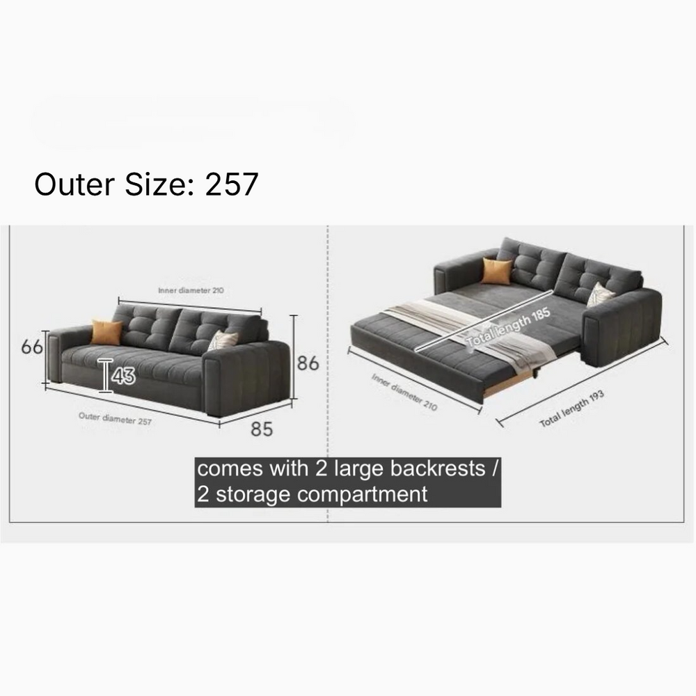 Modern Pull-Out Sofa Bed – Convertible Sleeper Couch with Storage – Space-Saving Upholstered Sofa Bed with Cushions – Large Capacity 257 Outer size