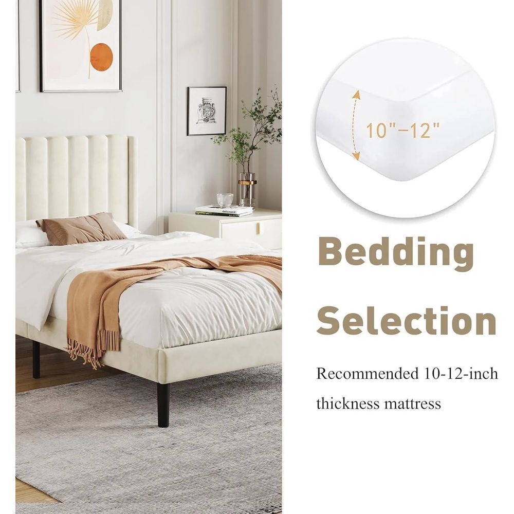 Modern Rectangular Velvet Upholstery Bed with Soft Wingback Headboard Cream (Twin)