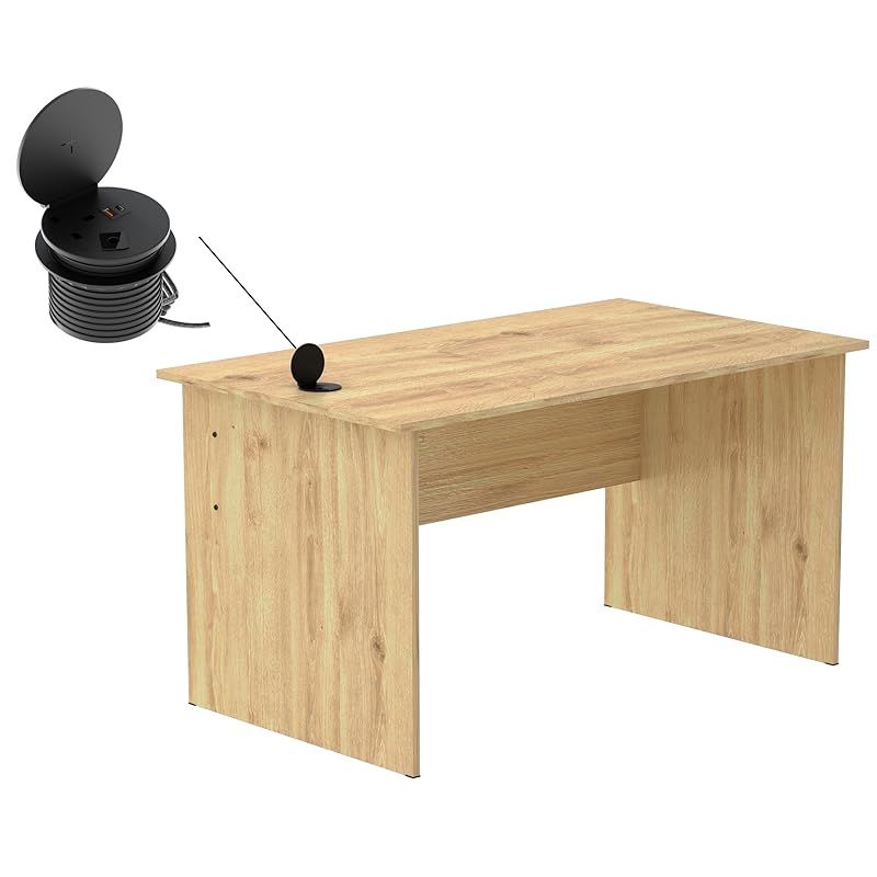 Modern Writing Study Table With Round Desktop Power Module - Oak
