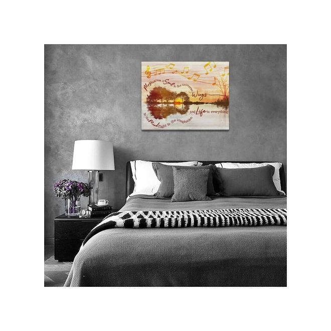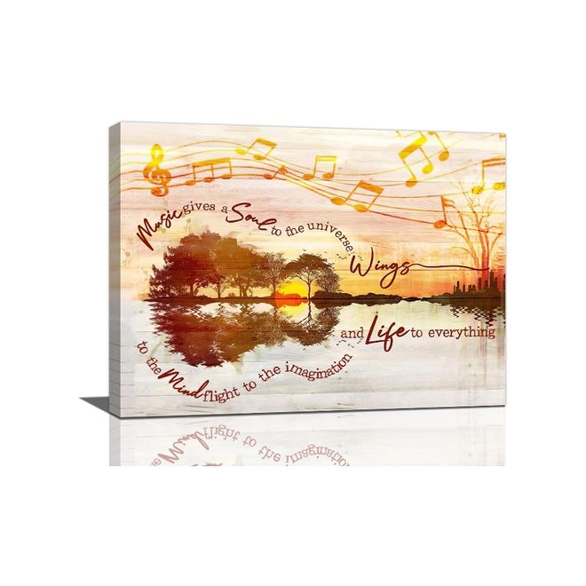 Music Wall Art Guitar Wall Decor Rustic Musical Note Pictures Painting Lake Artwork Canvas Home Decor Framed For Bathroom Bedroom Living Room Classroom 12"X16"