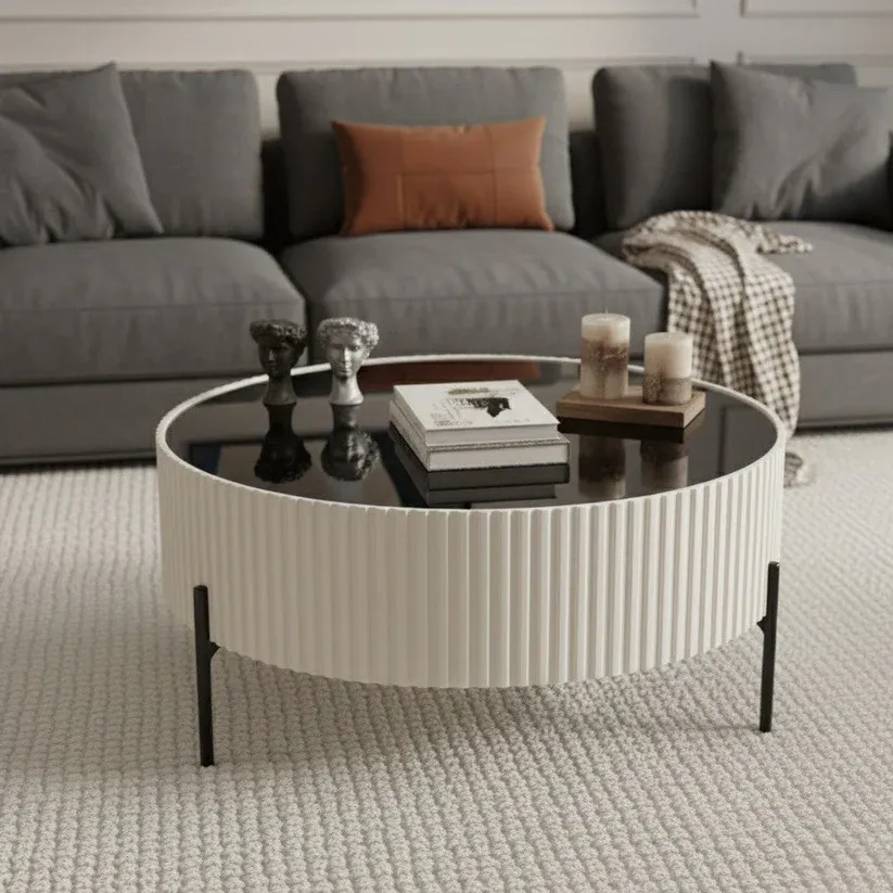 The Myra Coffee Table Cream is a beautifully designed piece that brings effortless elegance to any space. Featuring a soft cream finish paired with a sleek black glass top, this table blends minimalism with sophistication. Its round shape exudes harmony, making it a perfect fit for modern, contemporary, or even classic interiors. The gentle cream tone creates a light and airy feel, while the contrasting black glass top adds depth and refinement. If you appreciate clean aesthetics and functional design, the Myra Coffee Table is a must-have addition to your home.