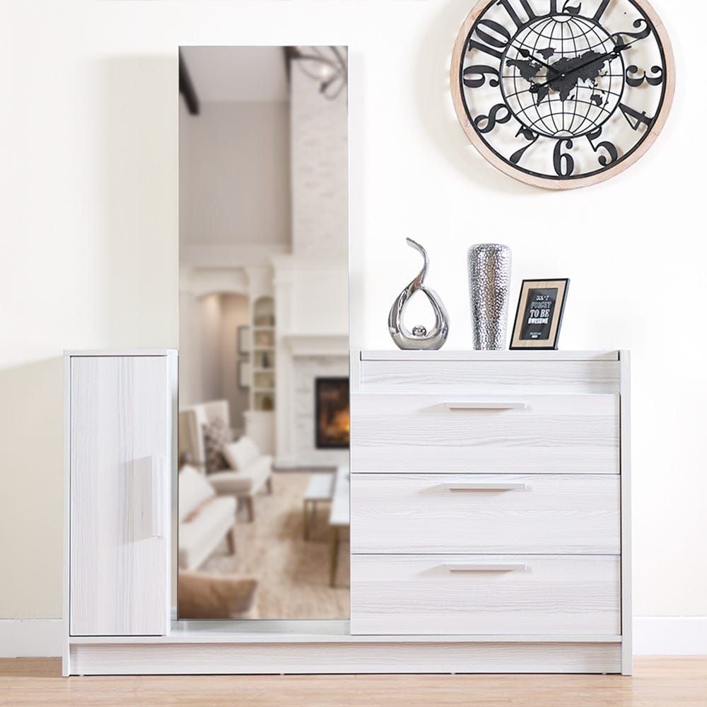 طاولة زينة مع مرآة من نيو ميجيل - رمادي فاتح