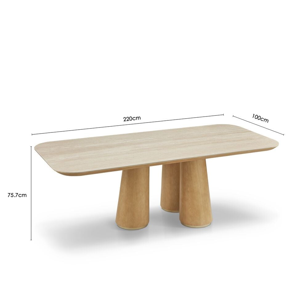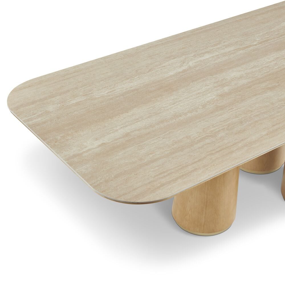 Nordomi 8 Seater Stone Top Dining Table- Cream/Natural Oak