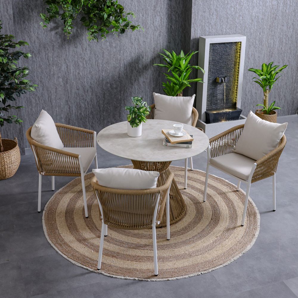 تتضمن المجموعة طاولة أنيقة وأربعة كراسي مريحة، مصممة بشكل مثالي لتناول الطعام في الهواء الطلق، أو وجبات فطور نهاية الأسبوع، أو حتى لتبادل أطراف الحديث عند غروب الشمس.