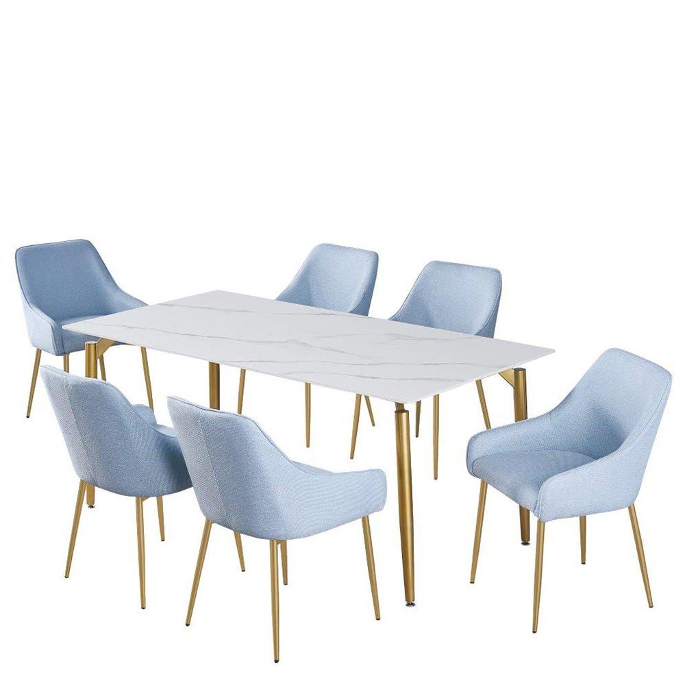 أوديت - طاولة طعام 6 مقاعد - رخام أبيض / أخضر بحري / طلاء ذهبي