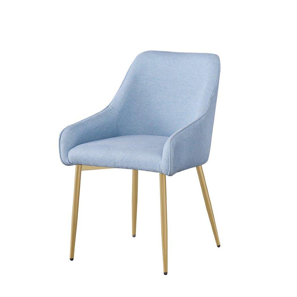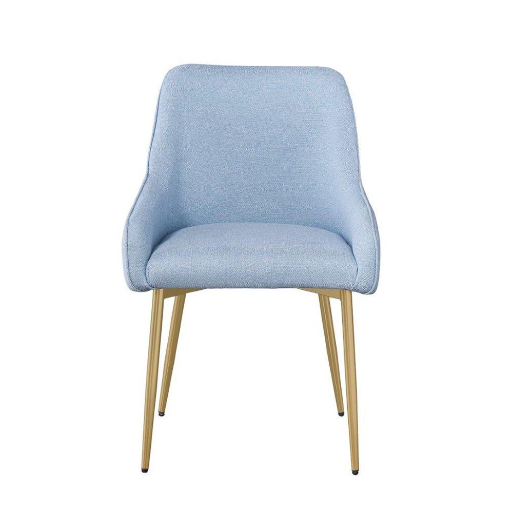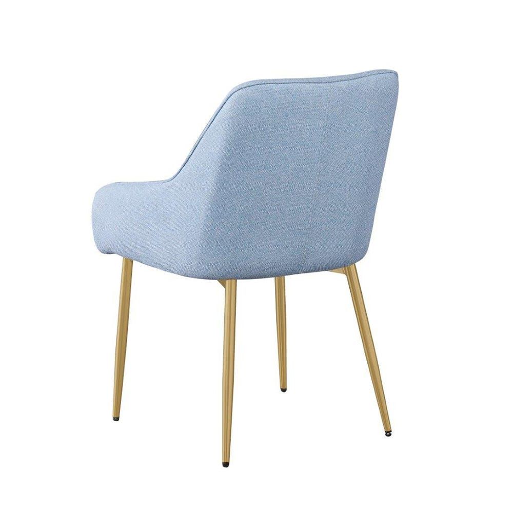 مصنوع من أنابيب معدنية ، كرسي الطعام هذا مبطن بالرغوة والمفروشات المصنوعة من القماش