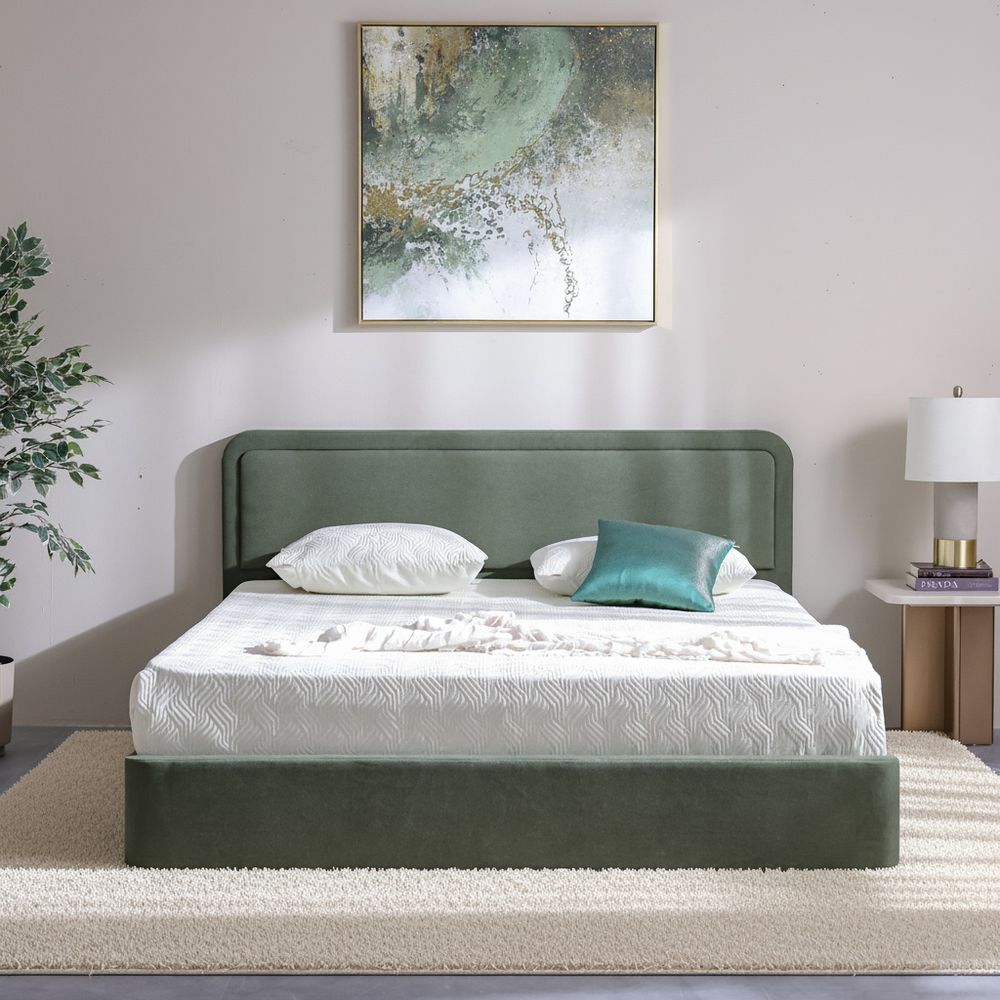 Olive 160x200 Upholstered Queen Bed-Olive Green