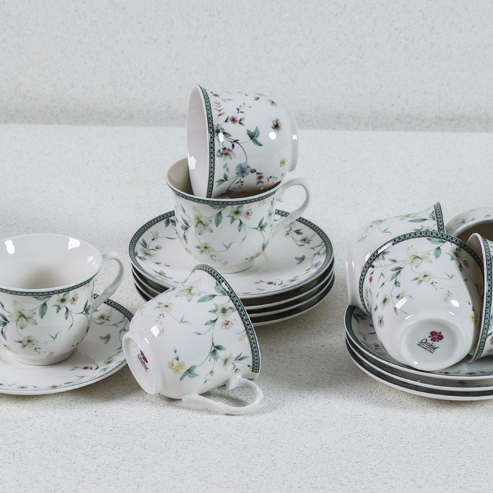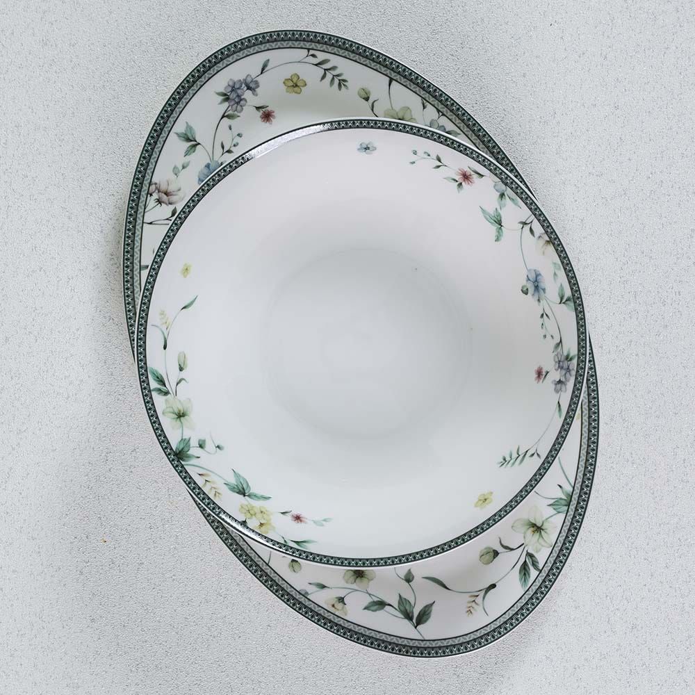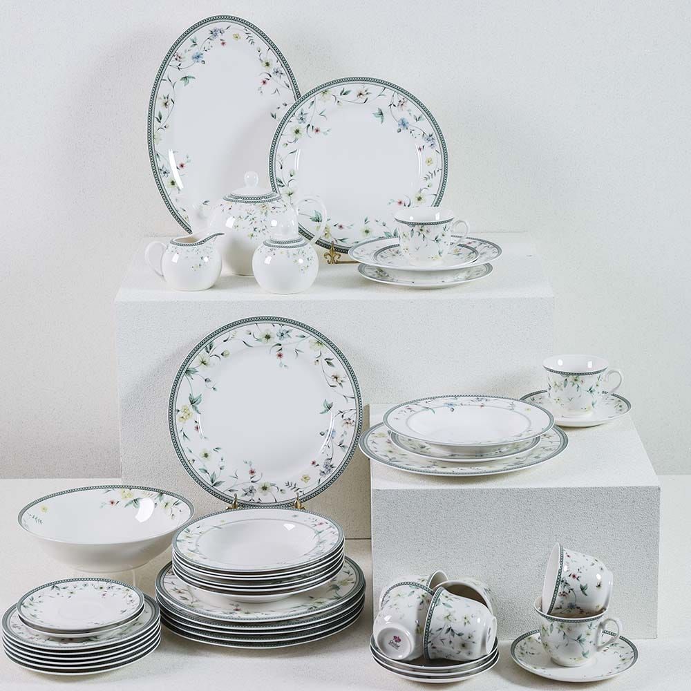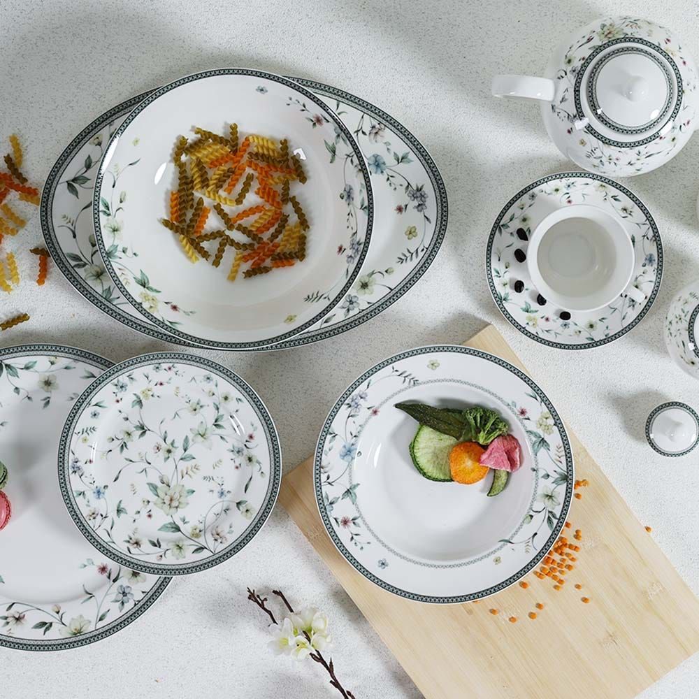 طقم عشاء أوركيد جرين ليف 47 قطعة على شكل عظمة صينية