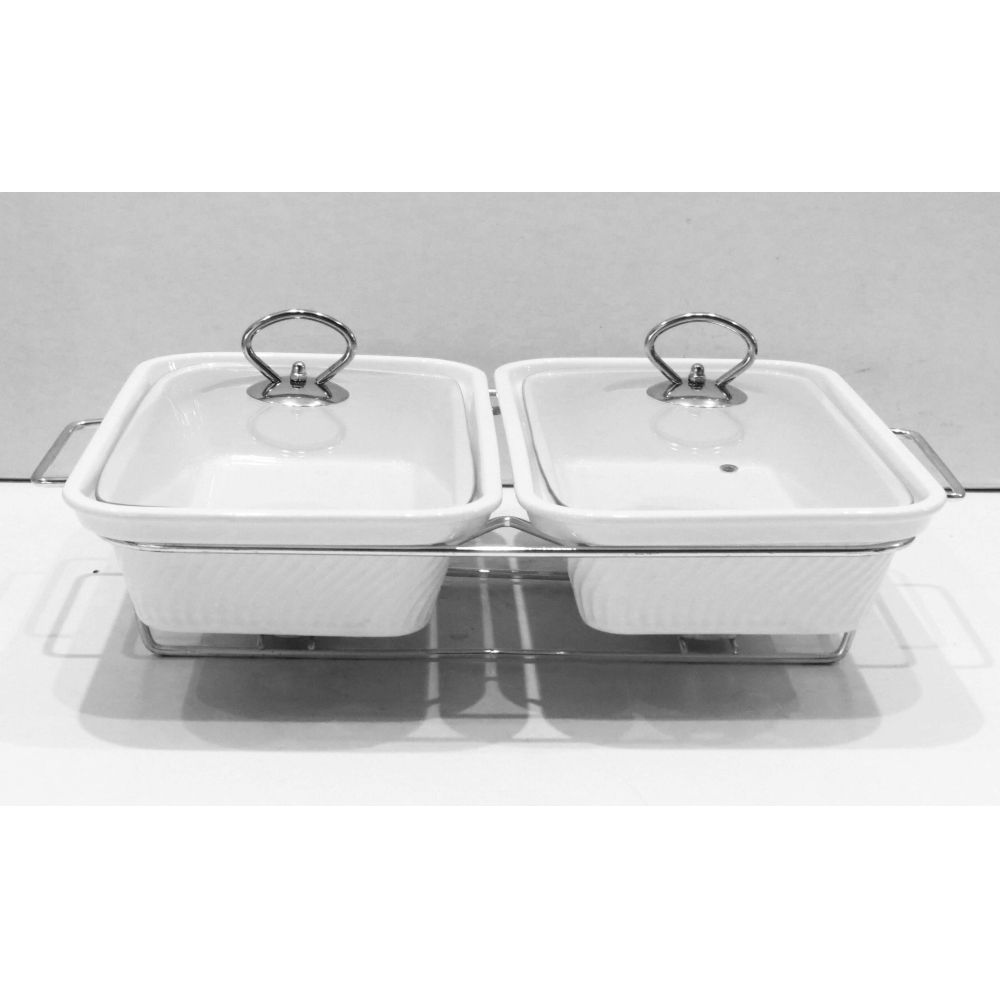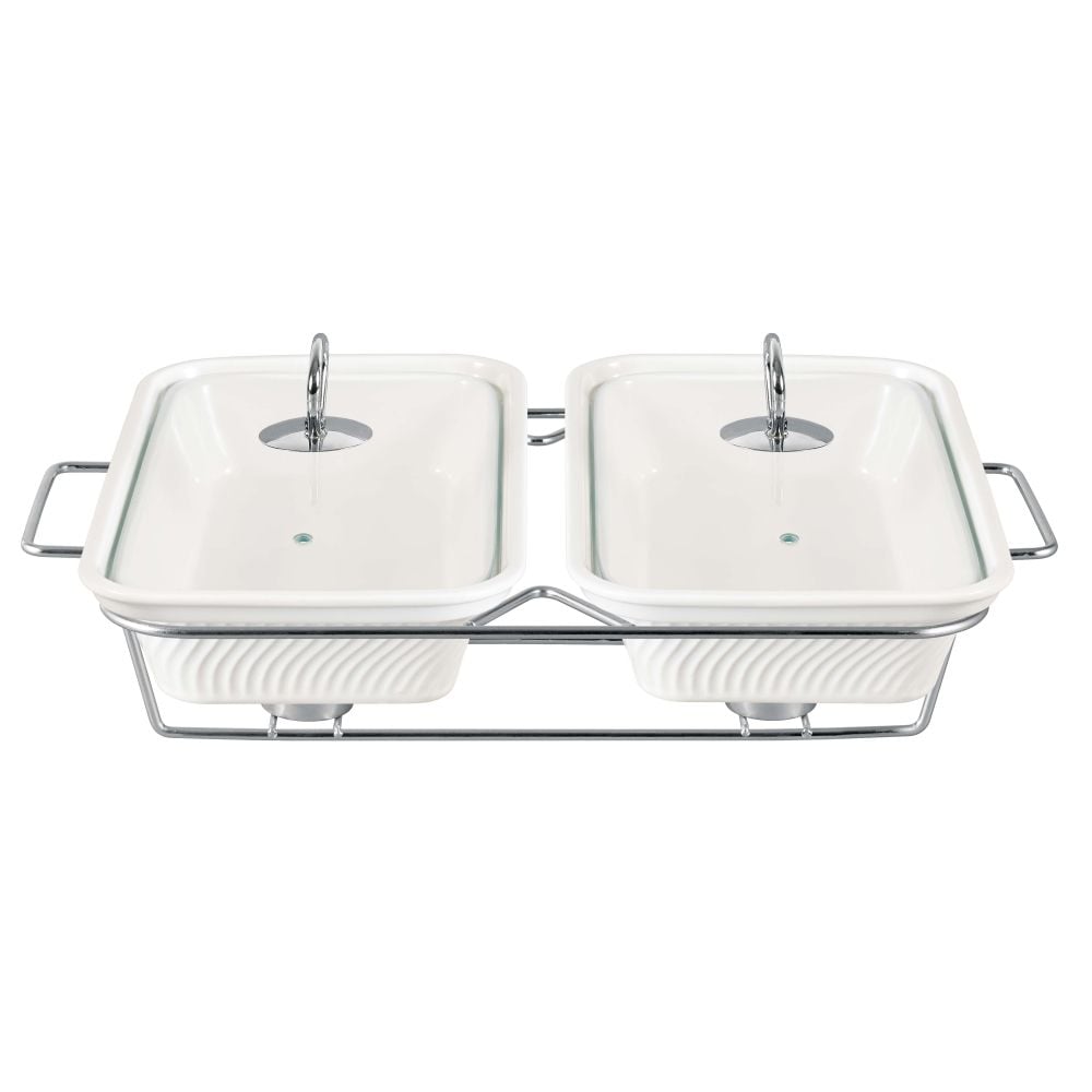 Orchid Twin Food Warmer Casserole With Candle Stand -12 Inch