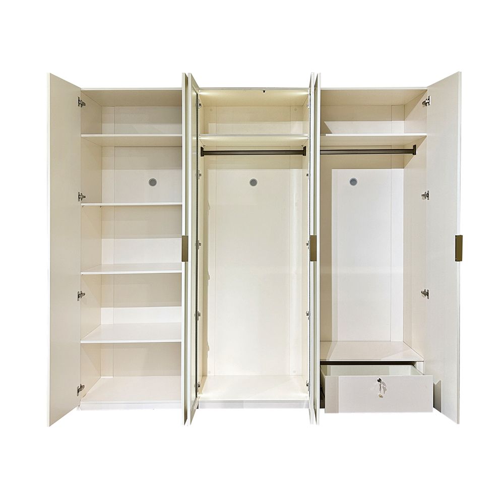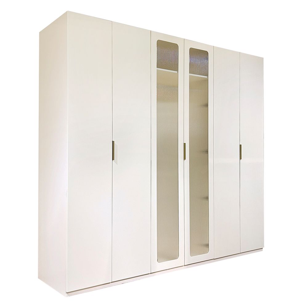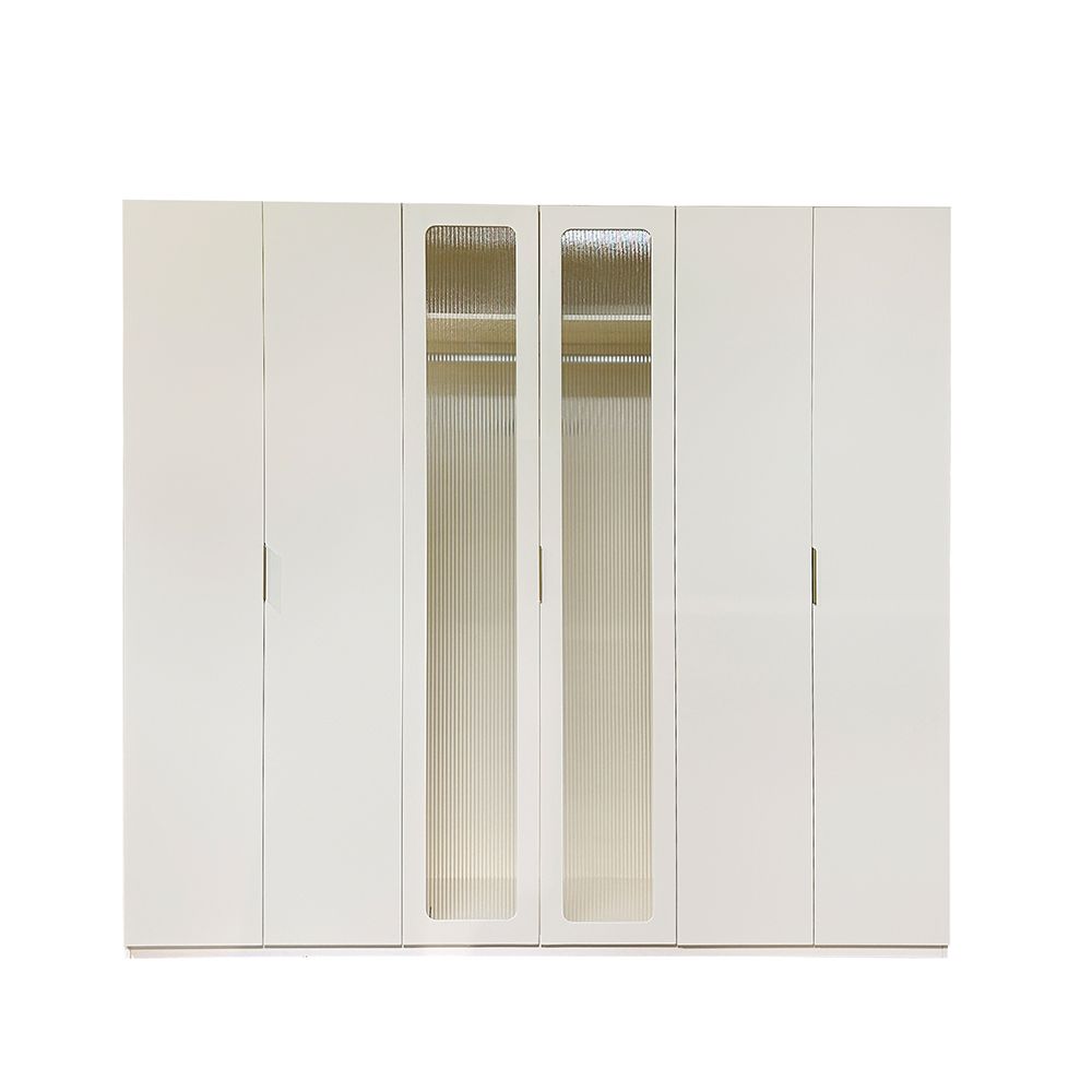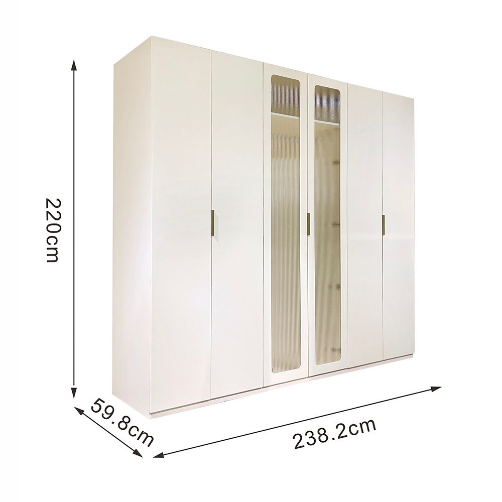 Orion 6 Door Wardrobe w/ 2 Fluted Glass Doors &LED - Beige/Brushed Gold