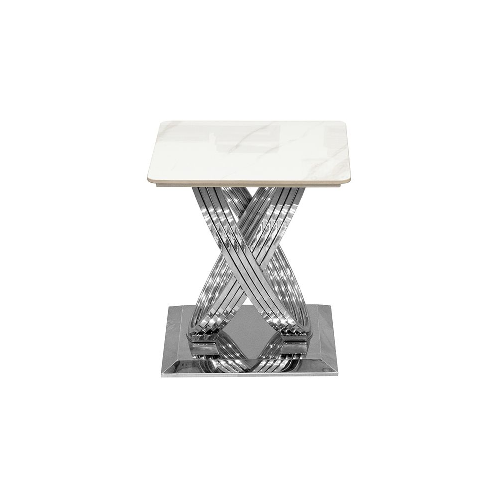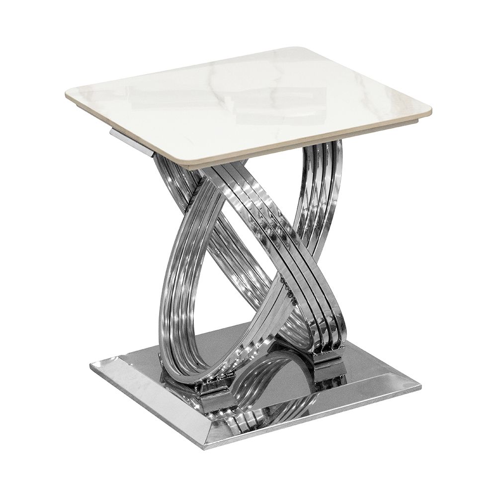 Orlando Sintered Stone End Table- White/Silver